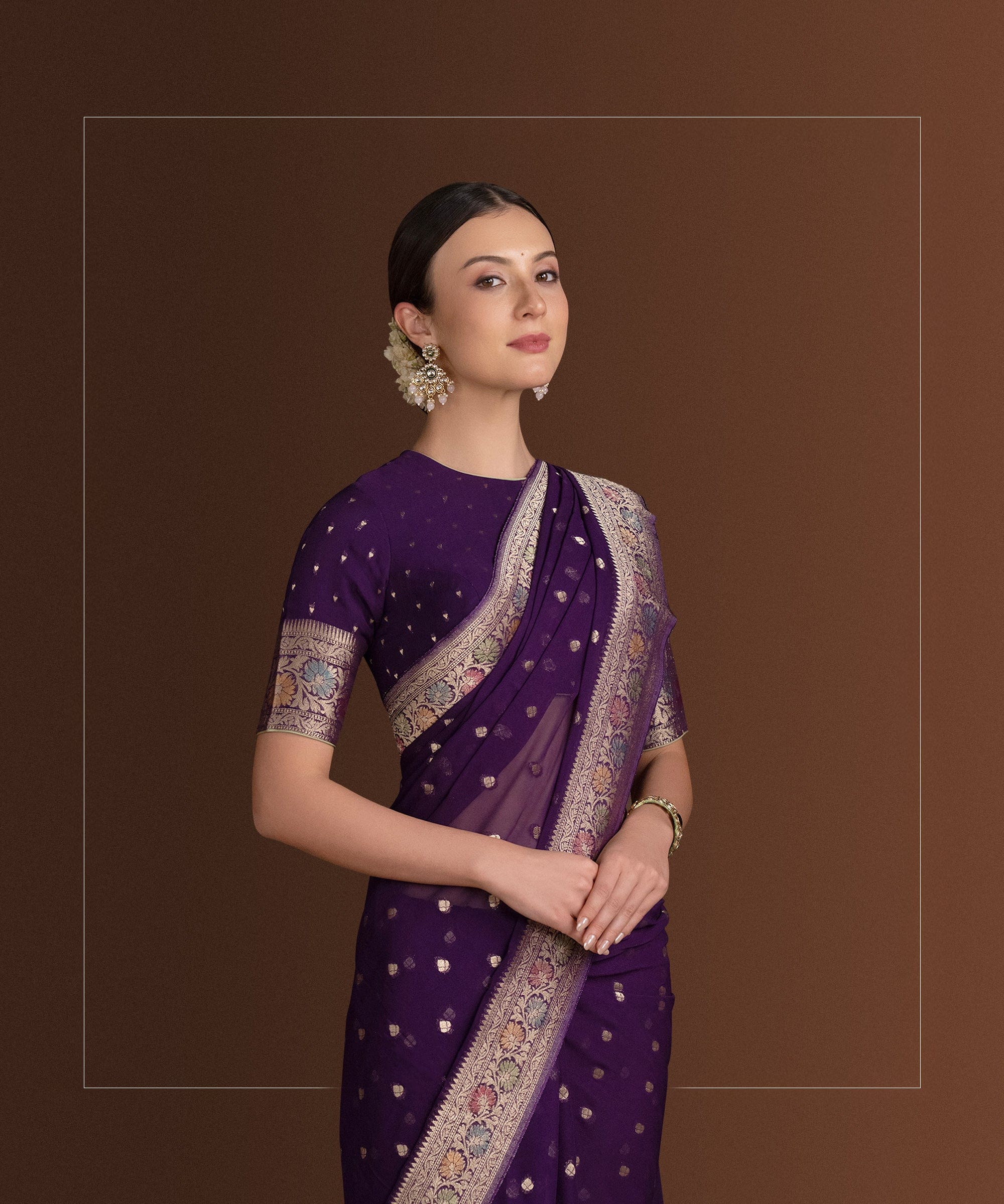 Festive OfferBaingani Purple with Gold Sequence Embroidered Blouse