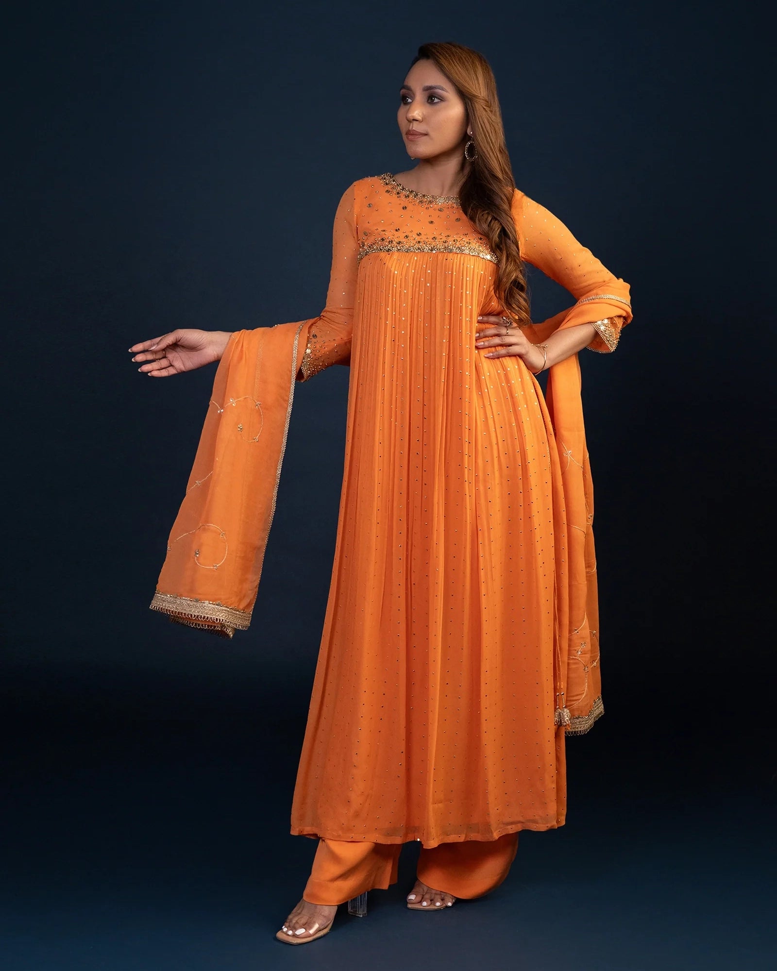 A flared long kurti fitted around the torso and flowy with multiple kalis at the button giving the kurti frock like pattern. It is one of the most worn styles for weddings and festivities.