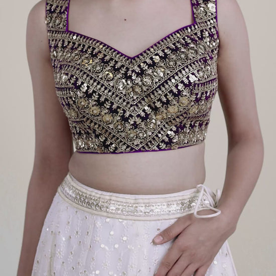 Baingani Purple with Gold Sequence Embroidered Blouse