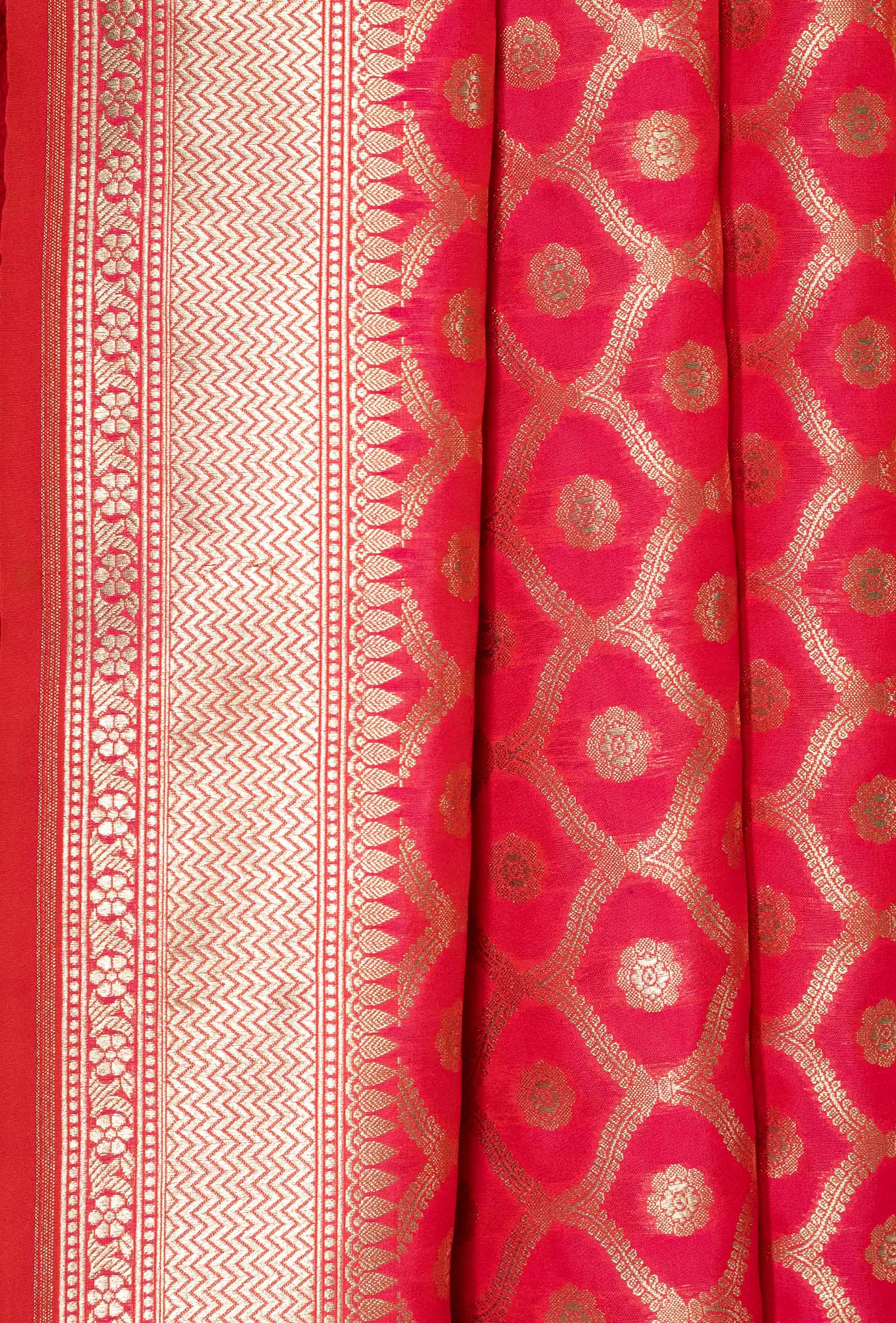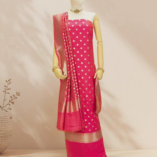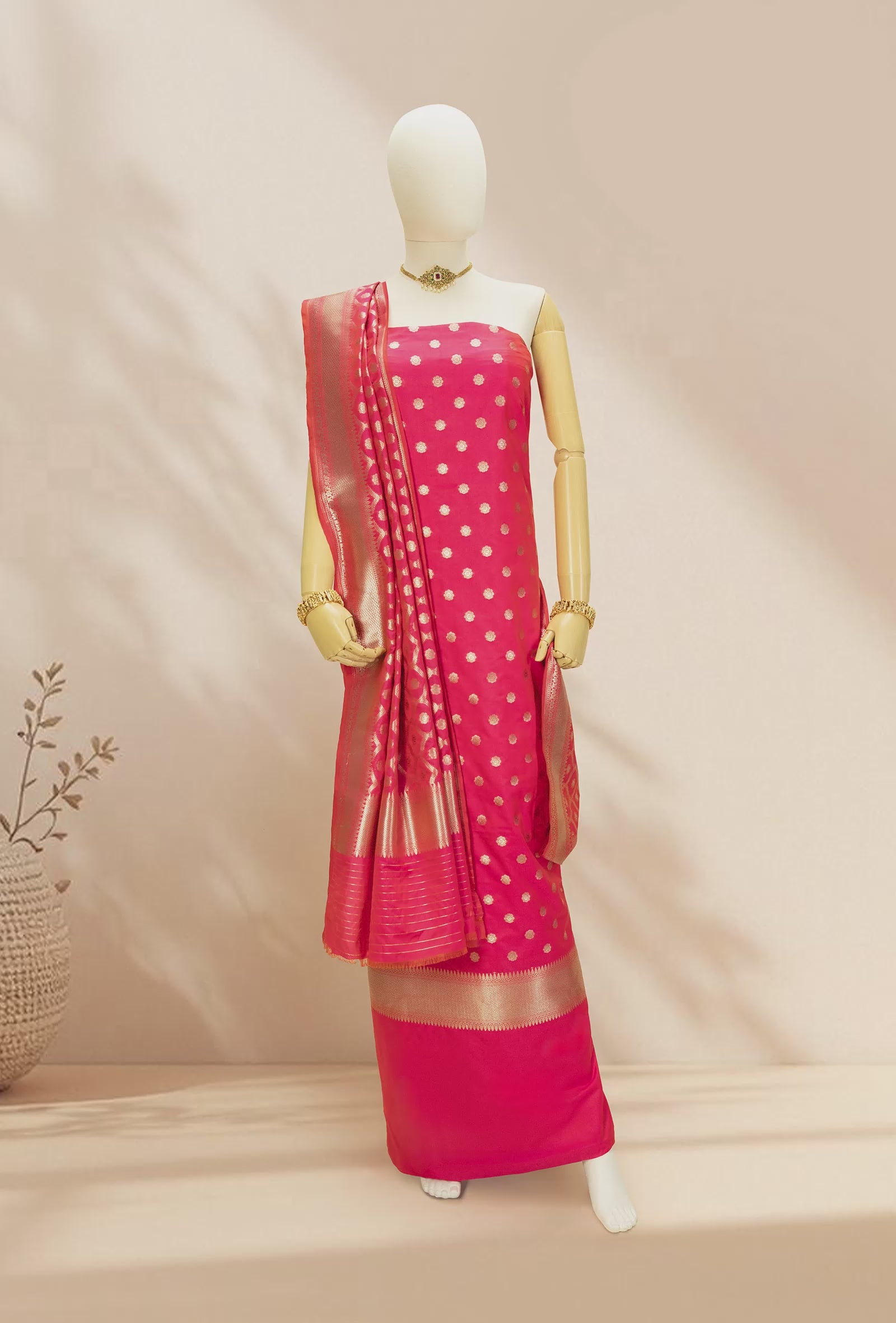 Banarasi Silk 3-Piece Suit with Two Tone Neon Pink