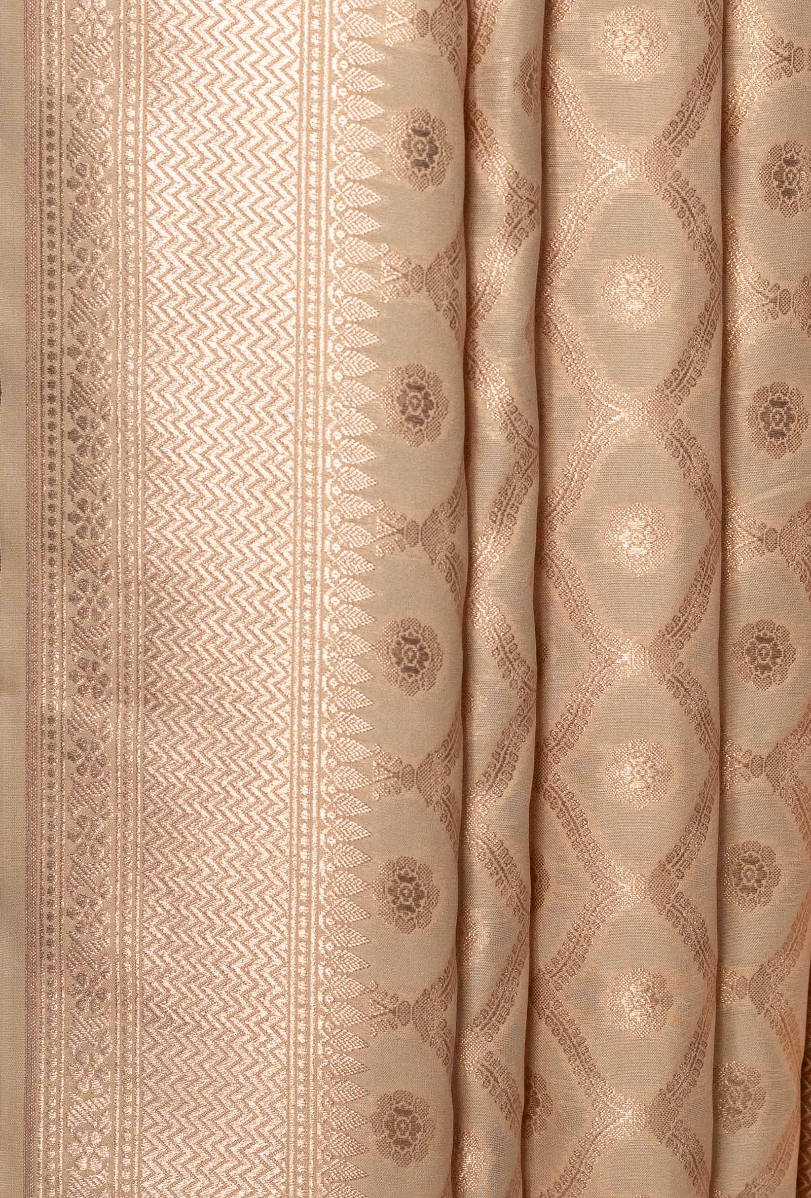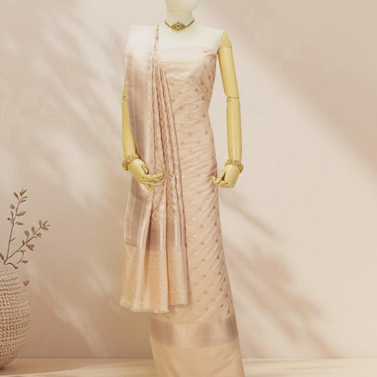 Beige Banarasi Silk Suit Set – Kurta, Pure Silk Pant & Dupatta