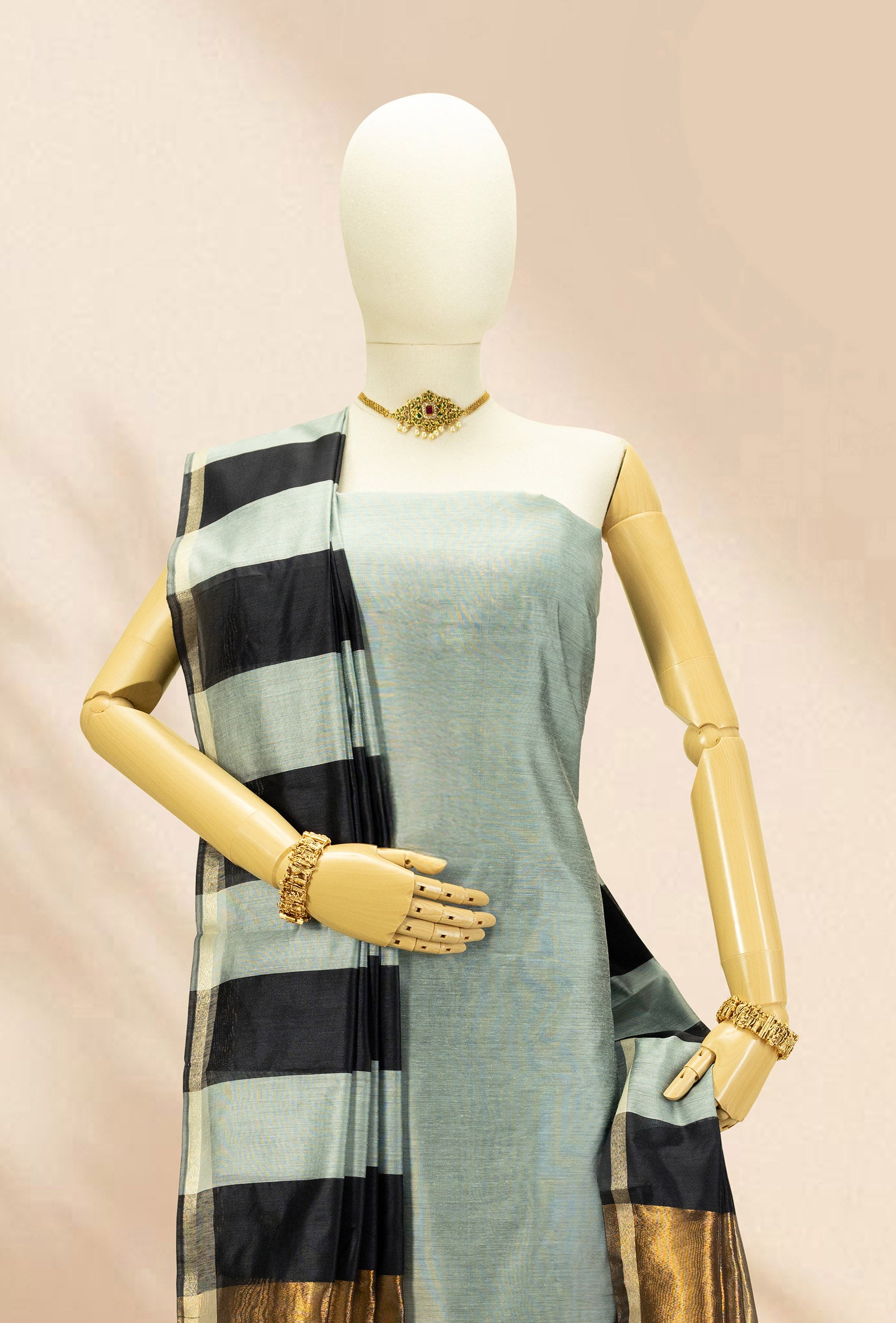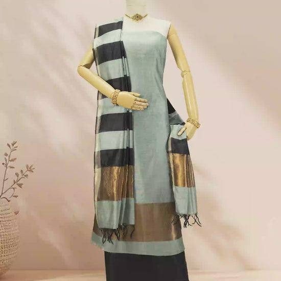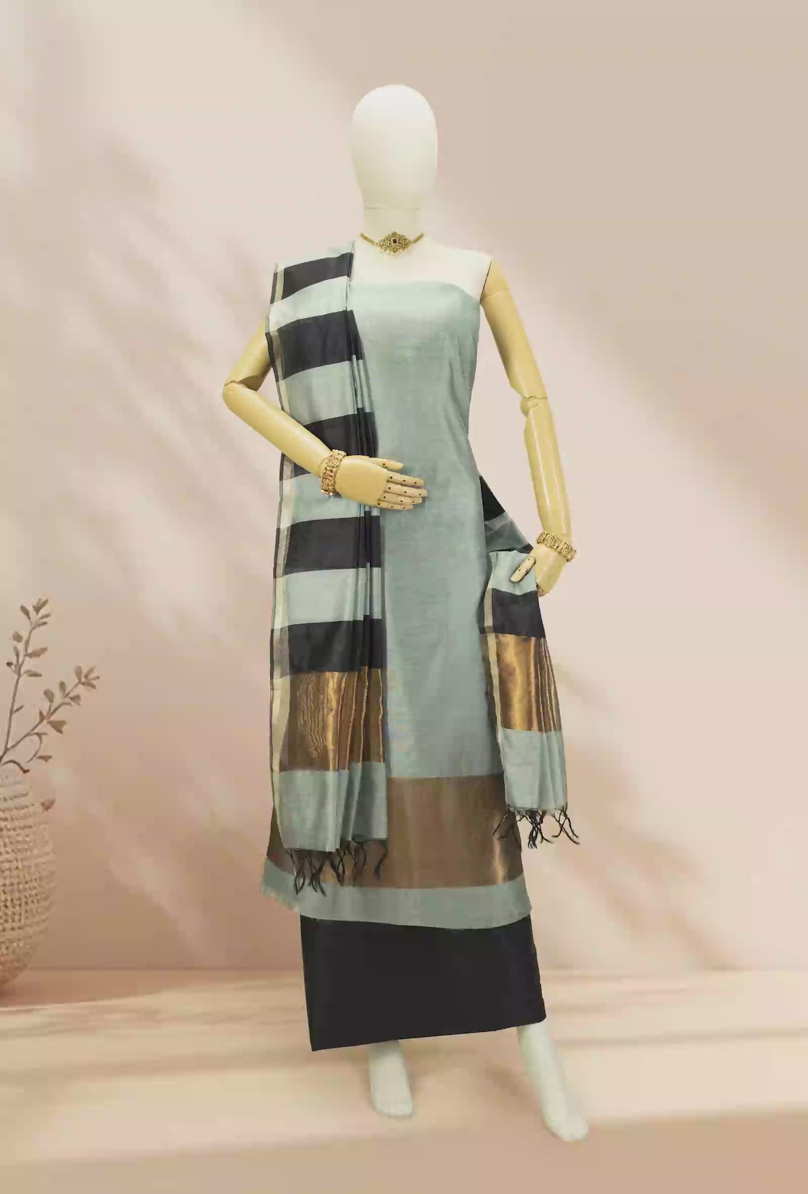 Black Grey & Antique Gold Silk Kurta Set With Dupatta & Pants