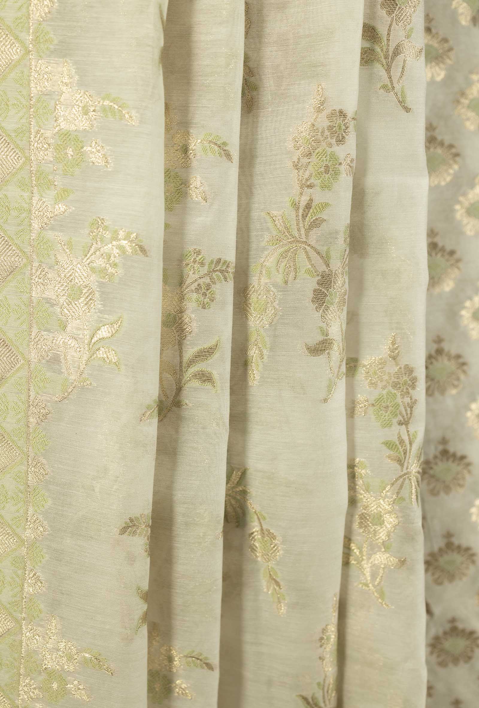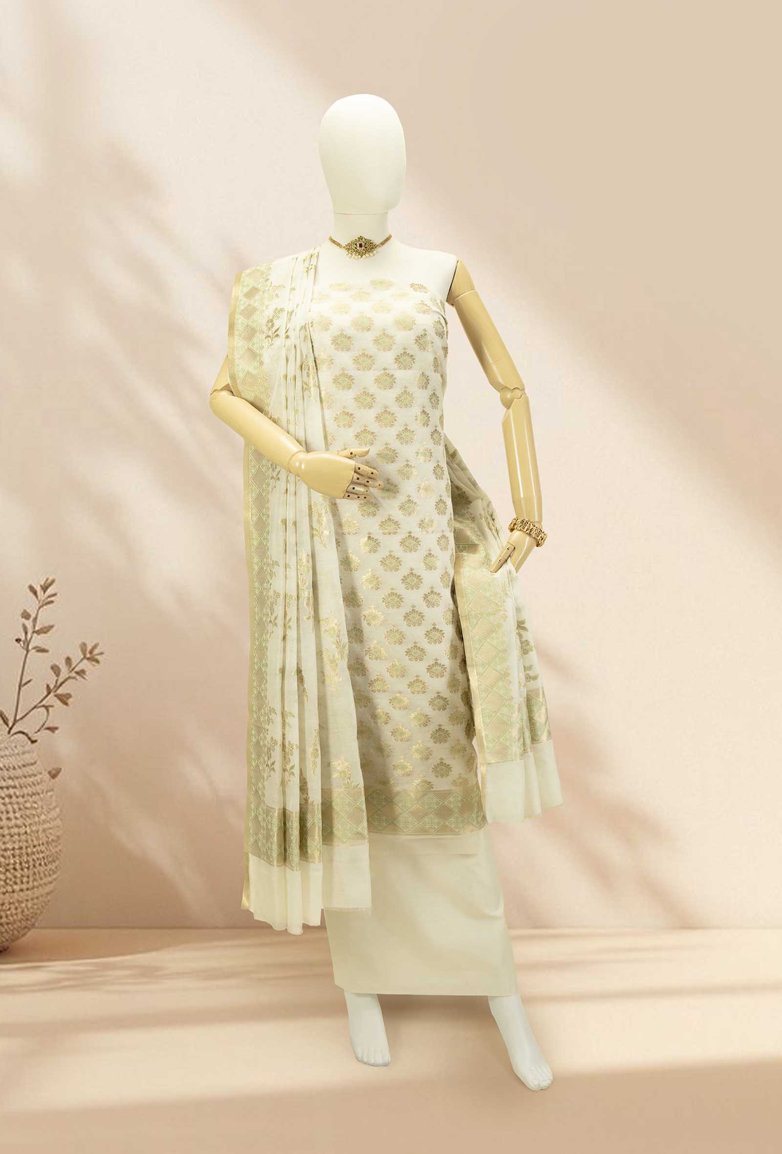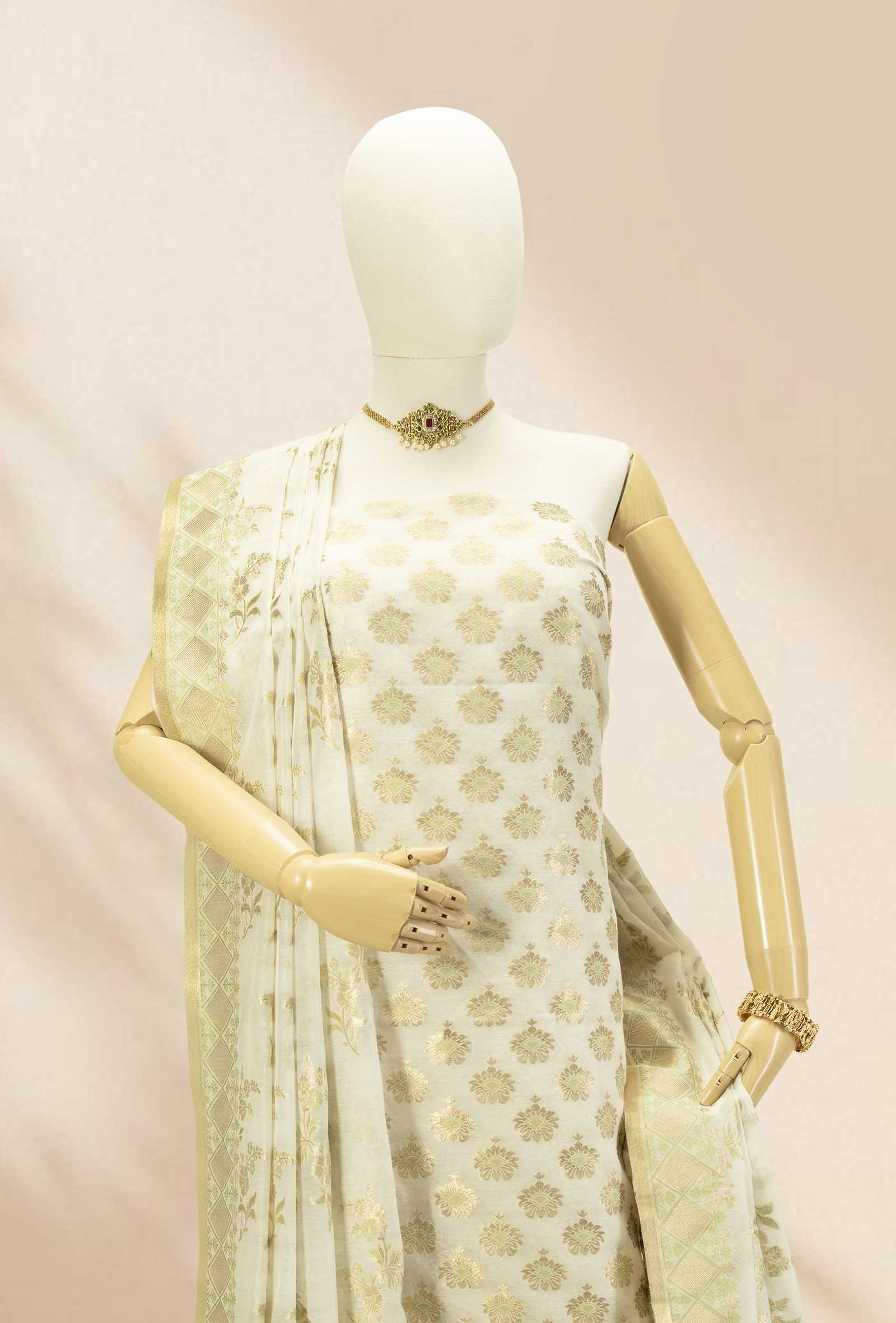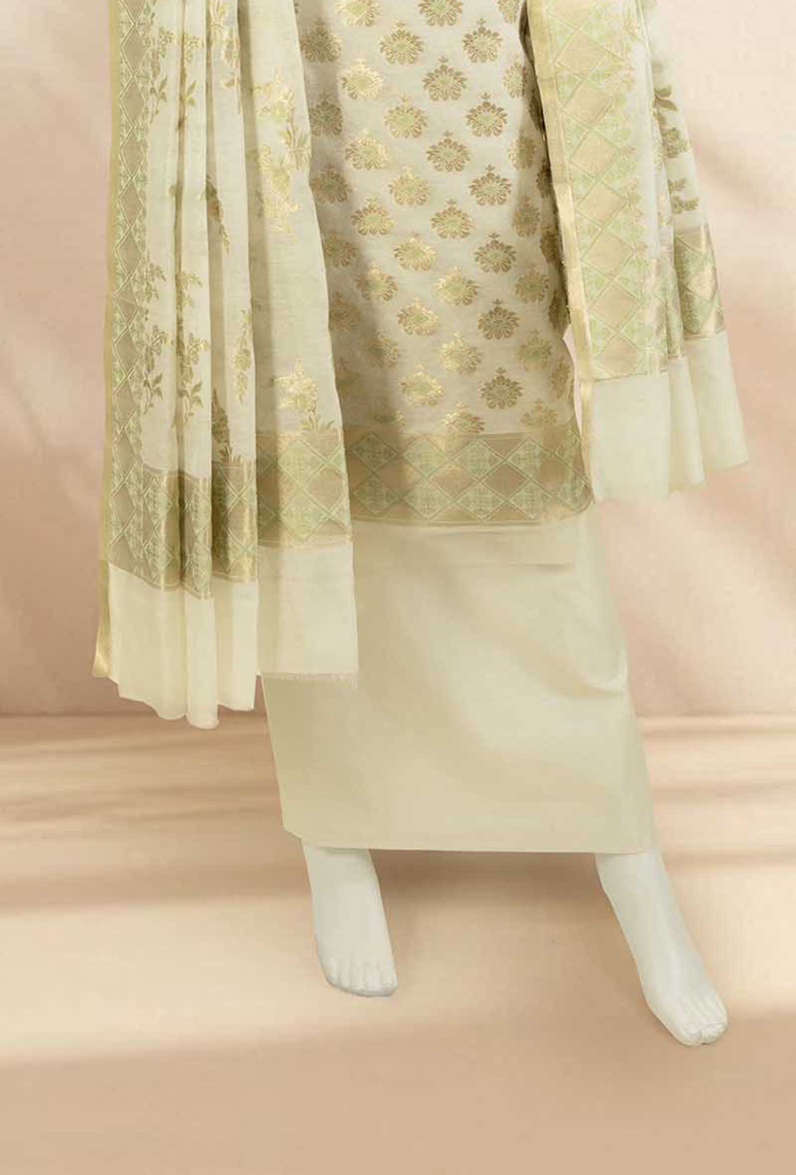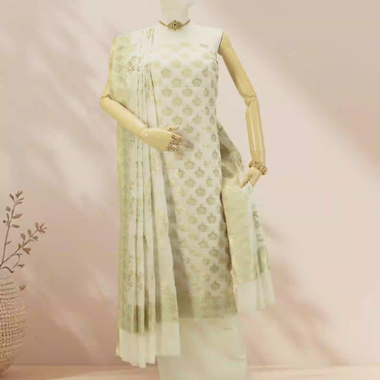 Cream & Green Chanderi Suit Set With Antique Gold Accents