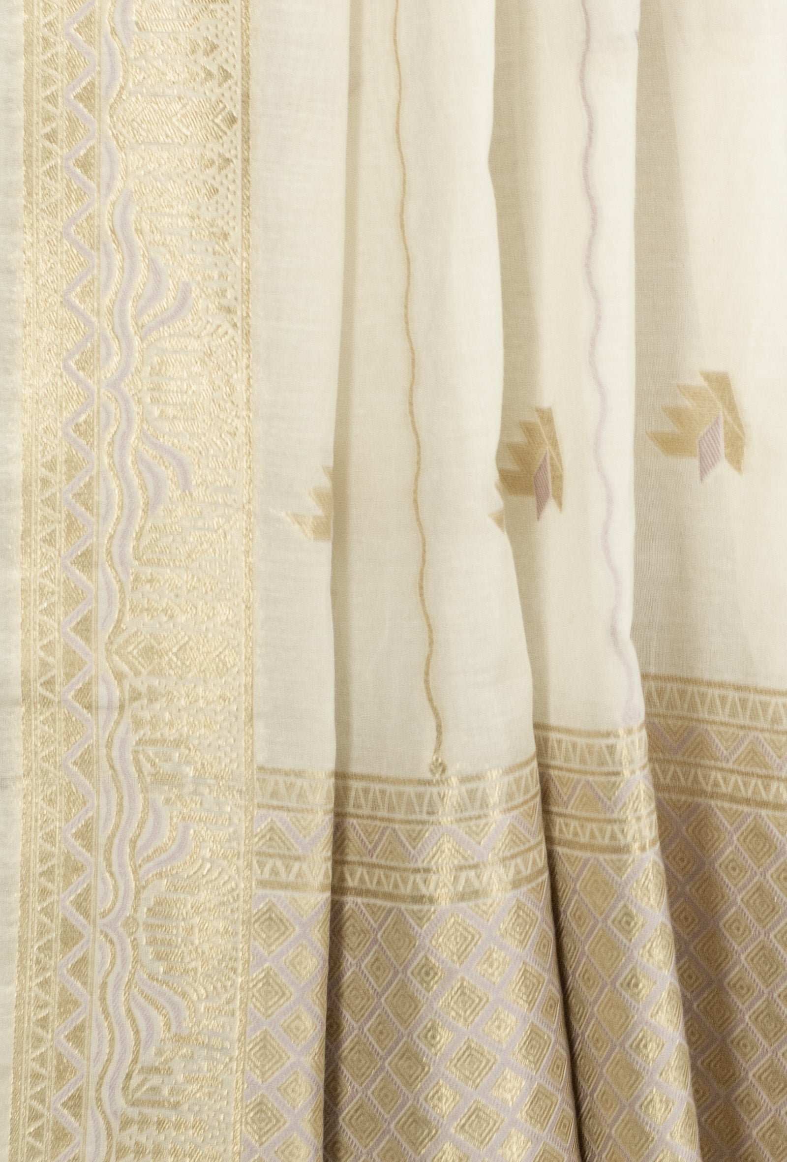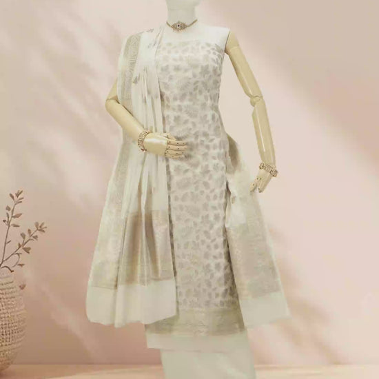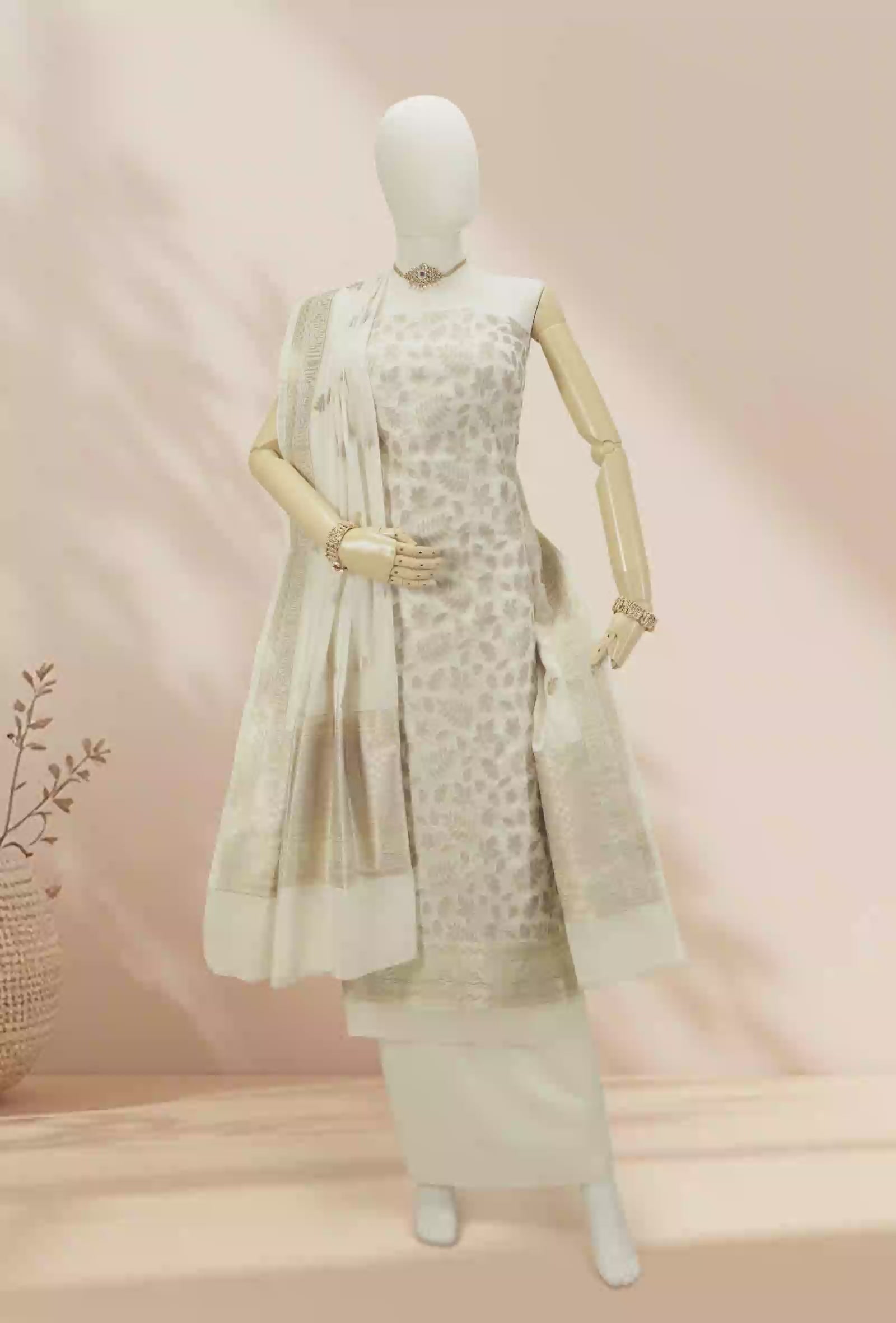 Cream & Lylac Chanderi Suit Set With Antique Gold Highlights