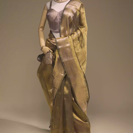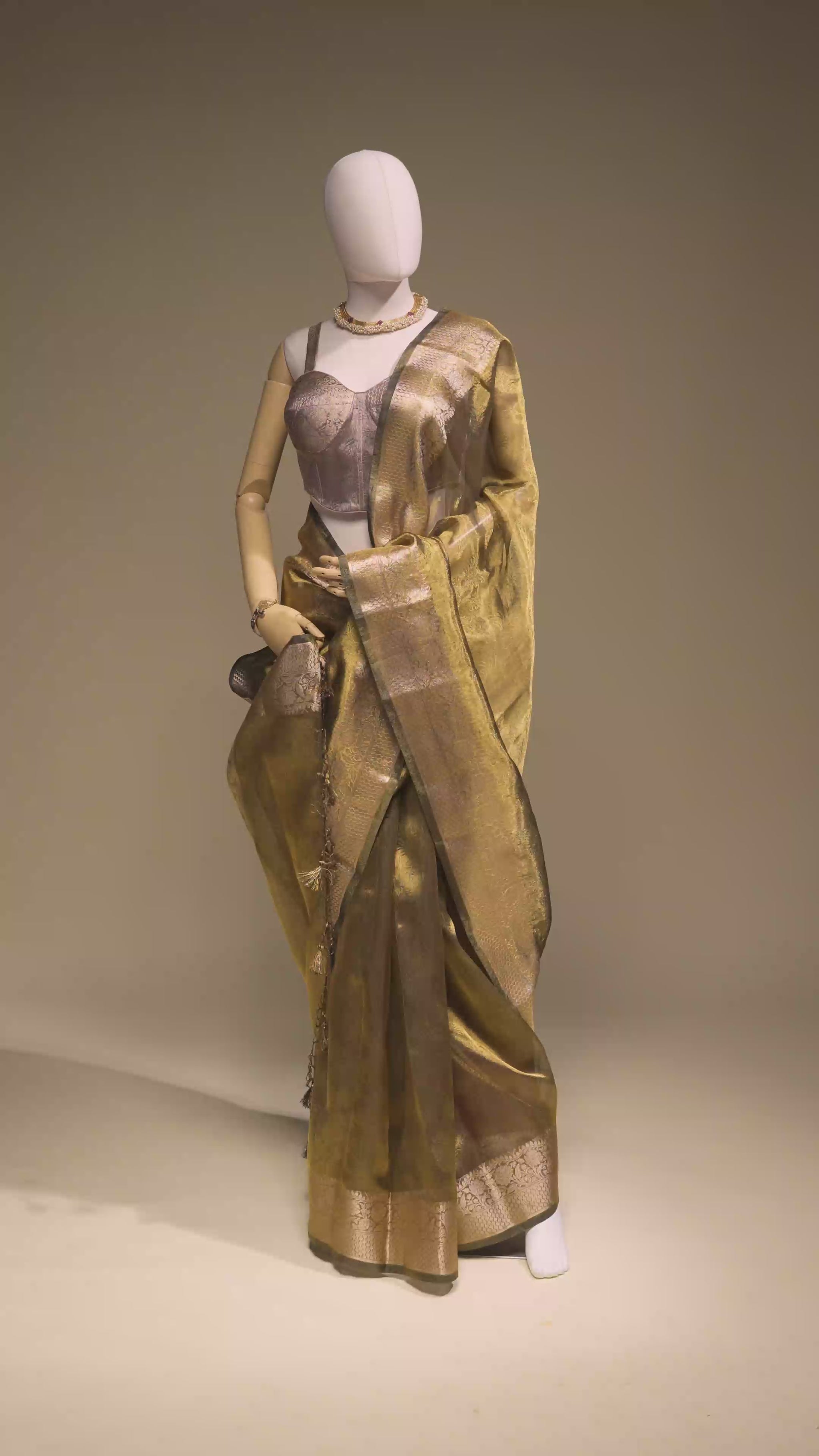 Deep Golden Shimmer Tissue Saree With Unstitched Blouse