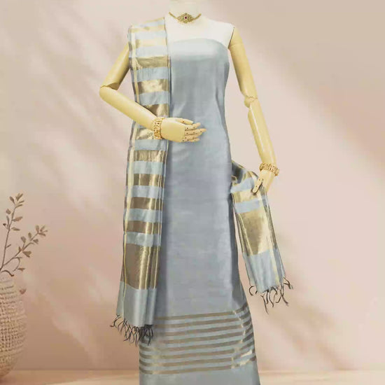 Elegant Grey Silk Kurta Set With Dupatta & Pants