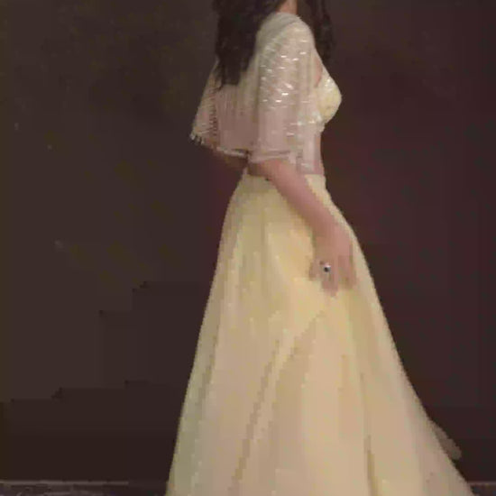 Estelle Yellow Lehenga with Sequined Blouse & Net Cape