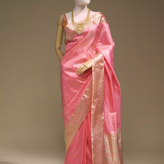 Flamingo Pink Katan Silk Saree With Unstitched Blouse