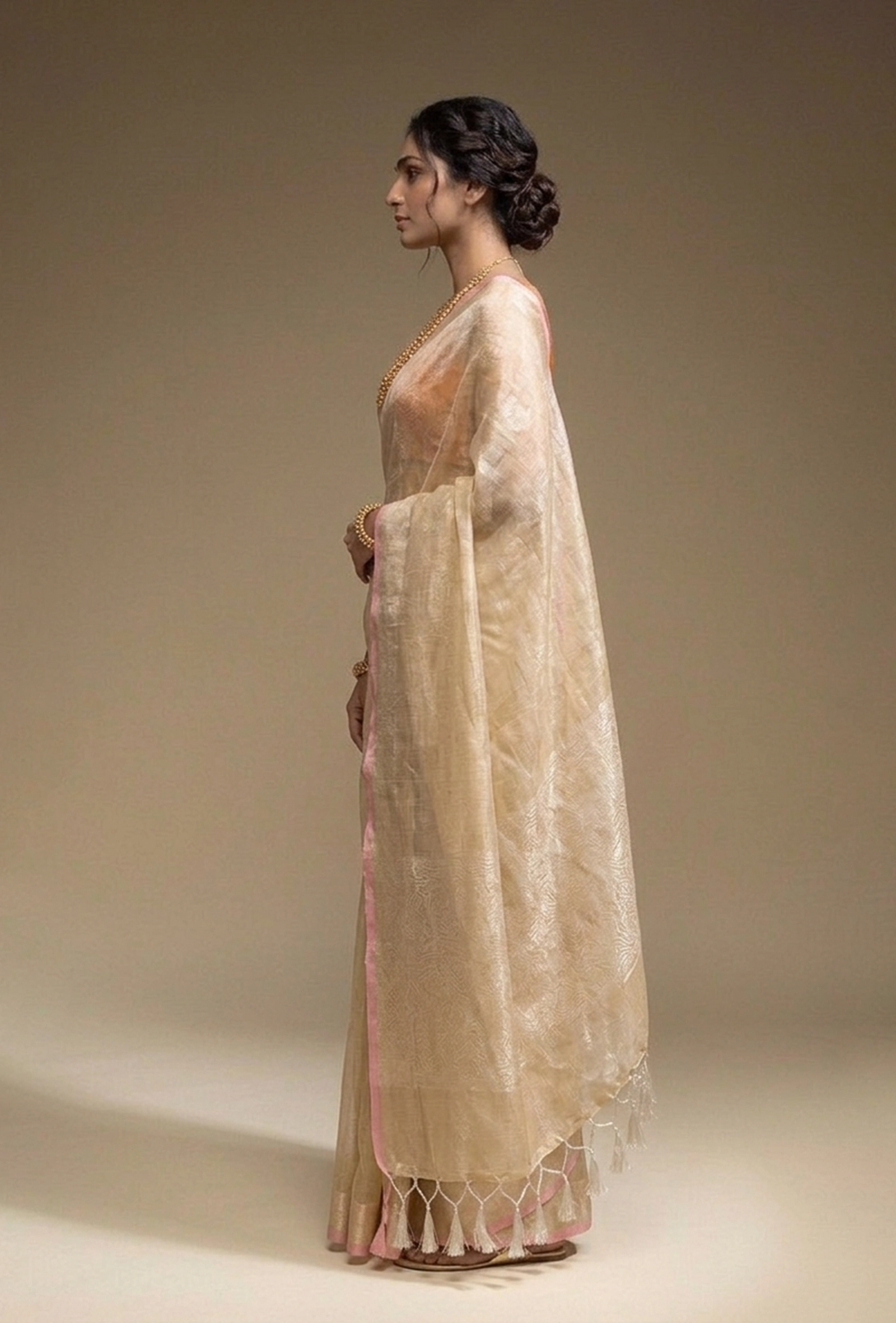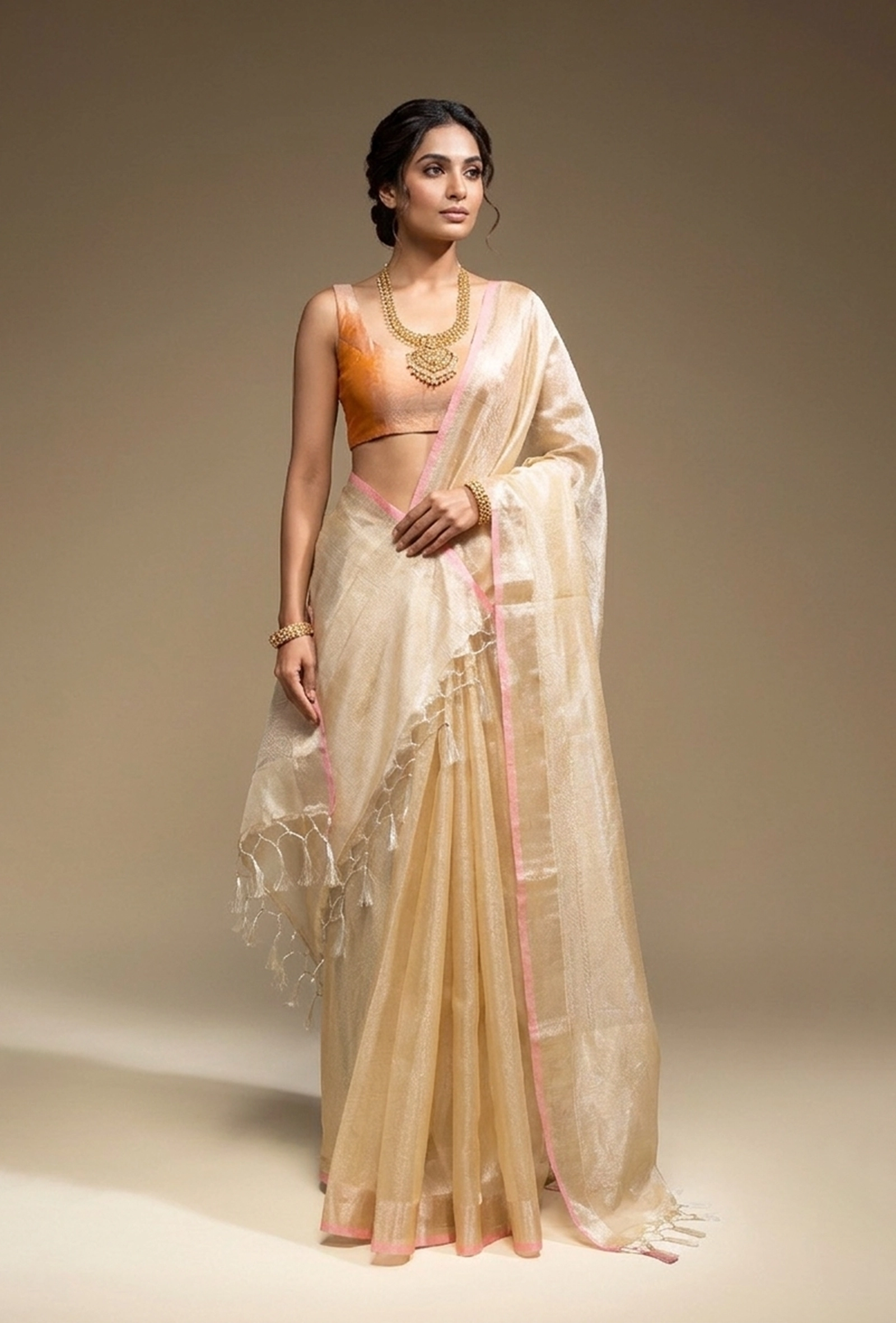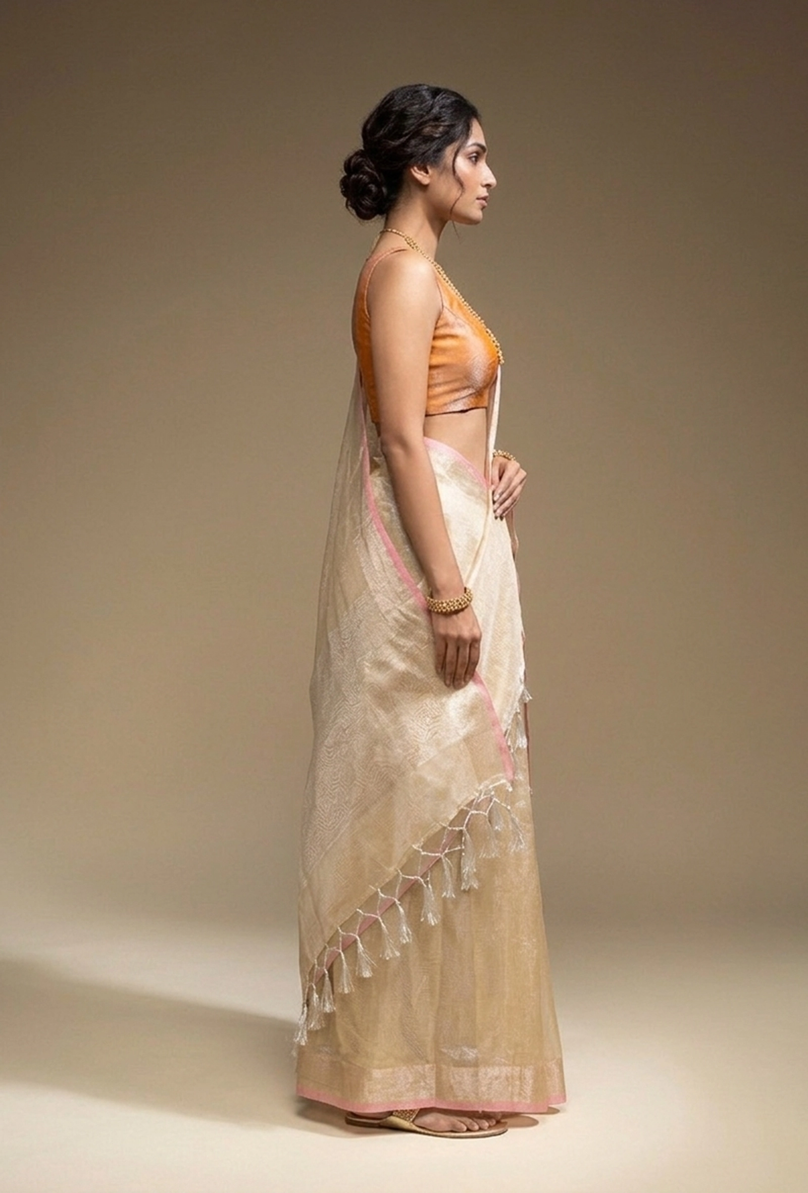 Golden Zari Khadi Tissue Saree With Unstitched Blouse