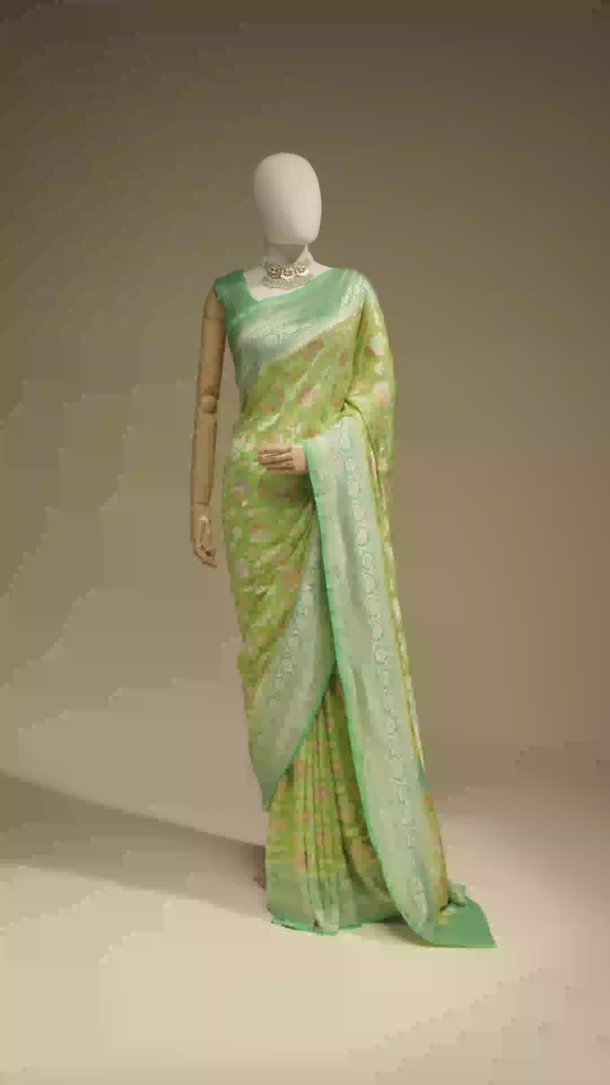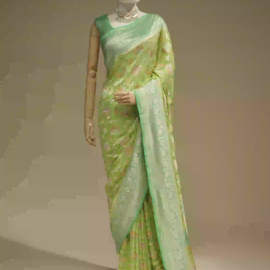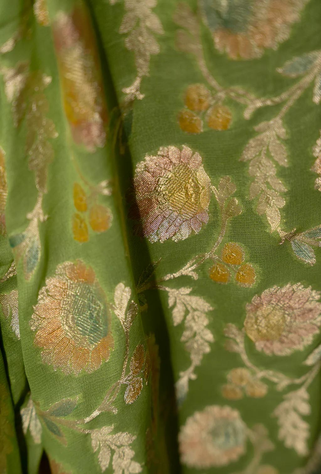 Green Banarasi Meenakari Khinkwab Brocade Saree