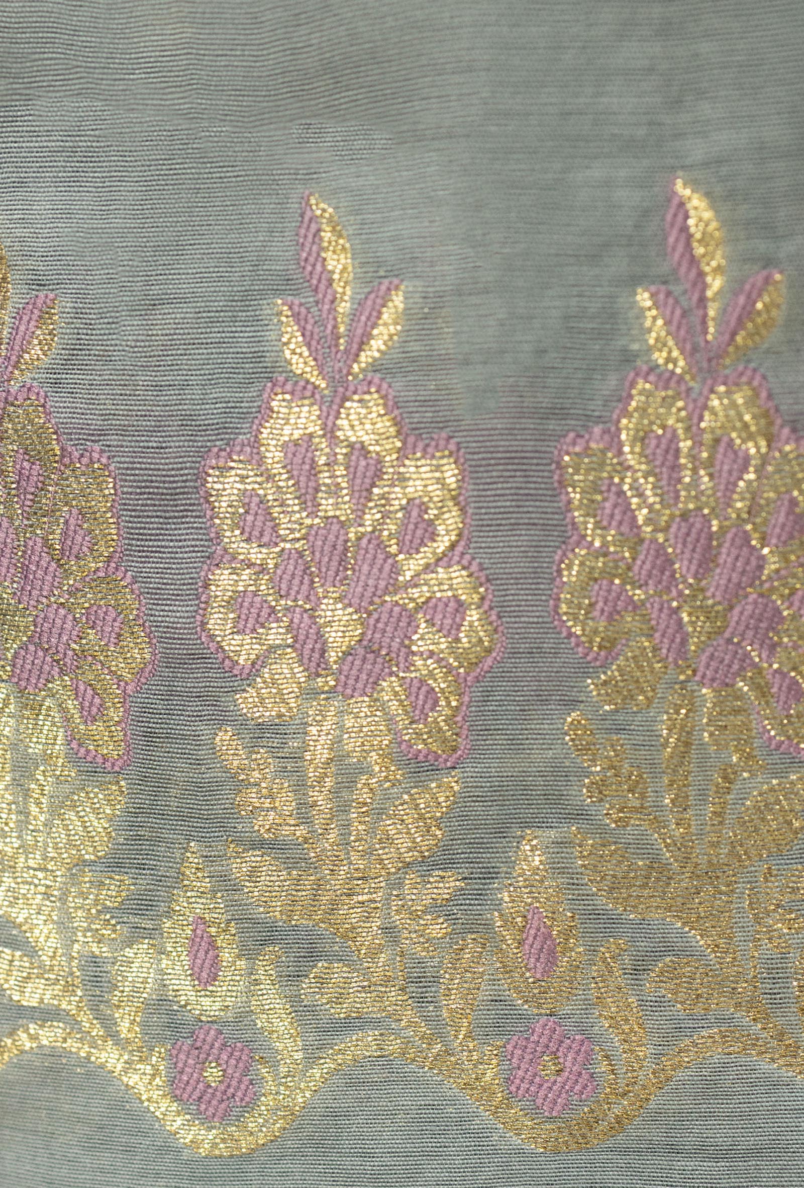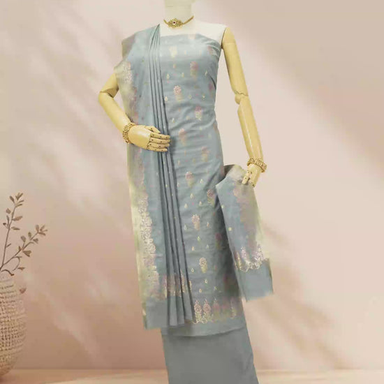 Grey Chanderi Kurta Set With Cotton Silk Pants & Dupatta