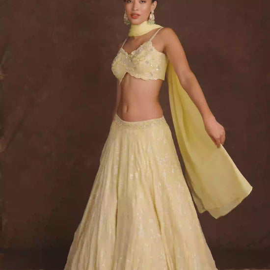 Iris Pastel Yellow Sequined Embroidery Lehenga Set