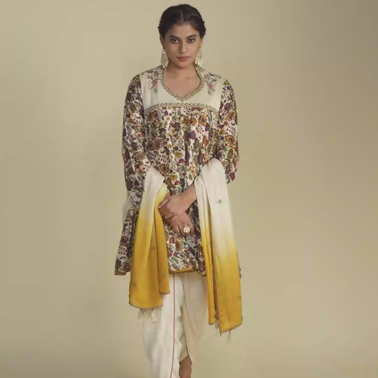 Ivory Floral Print Ethnic Kurta & Dhoti Set