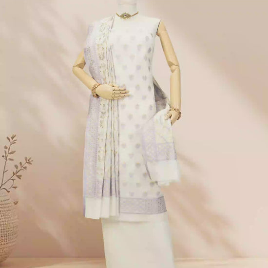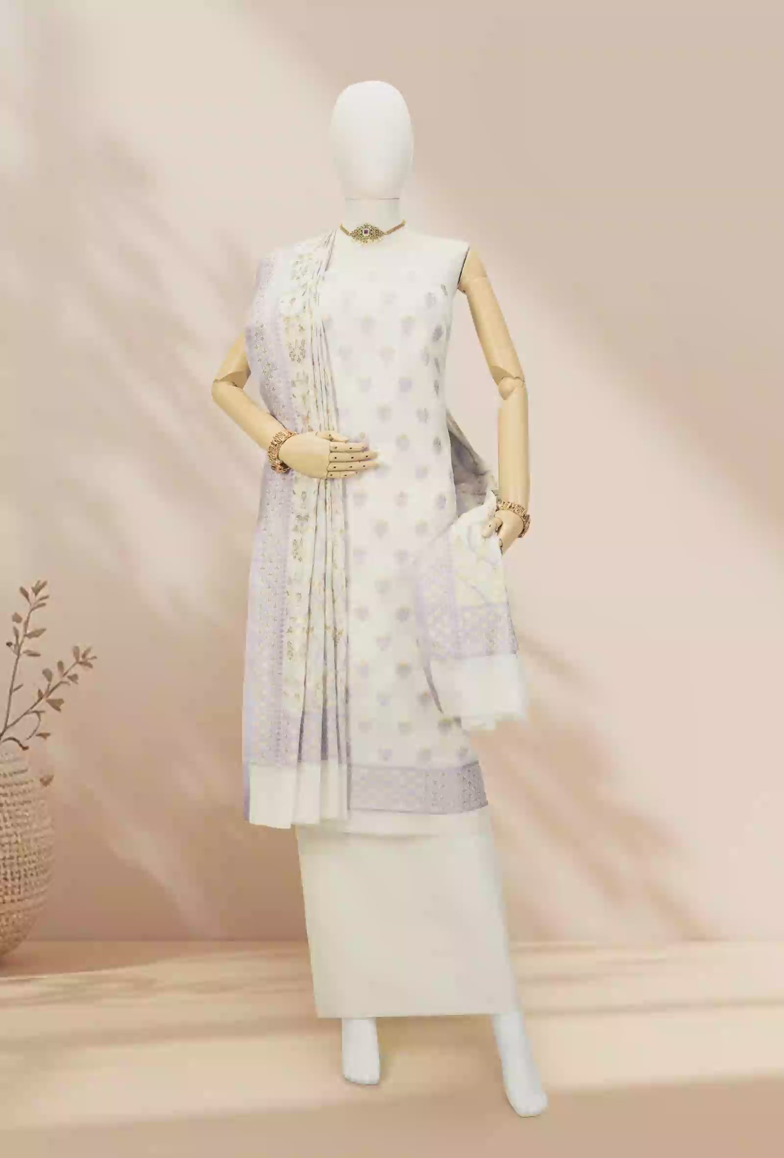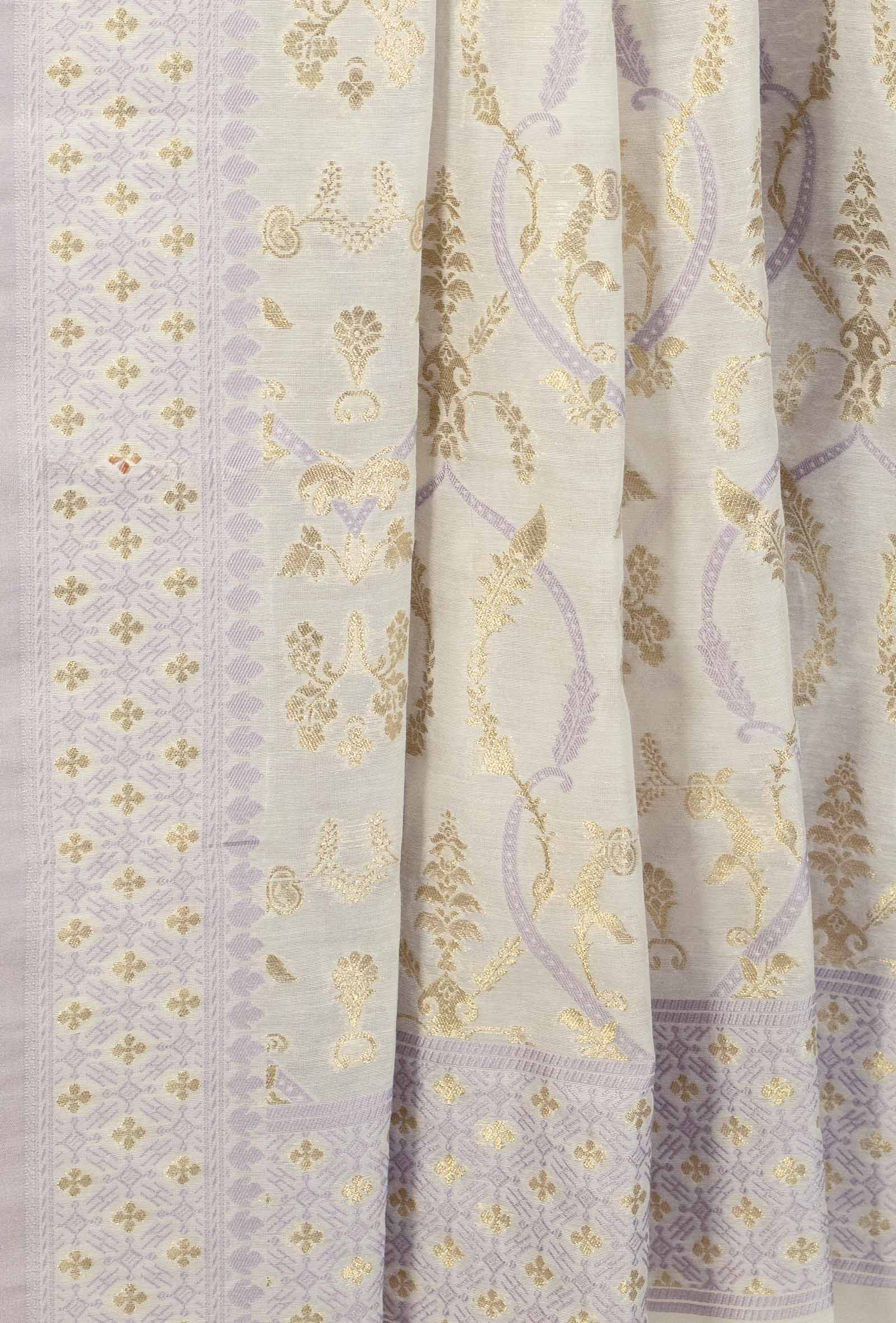 Ivory With Lilac Chanderi Kurta, Dupatta & Pants Set