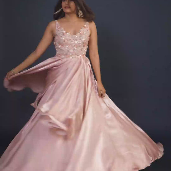 Step into a fairytale moment with the Juliet Pink Gabana Silk Crystal Embroidered Gown, a vision of delicate elegance and refined glamour, perfect for Mumbai's most enchanting events in 2025. This exquisite gown, in a soft and romantic pink hue, is crafted from luxurious Gabana silk, known for its beautiful drape and subtle sheen. It is meticulously adorned with intricate crystal embroidery, creating a captivating shimmer that catches every light and adds a touch of bespoke artistry. The gown's timeless silhouette ensures a graceful and memorable presence at any celebration.