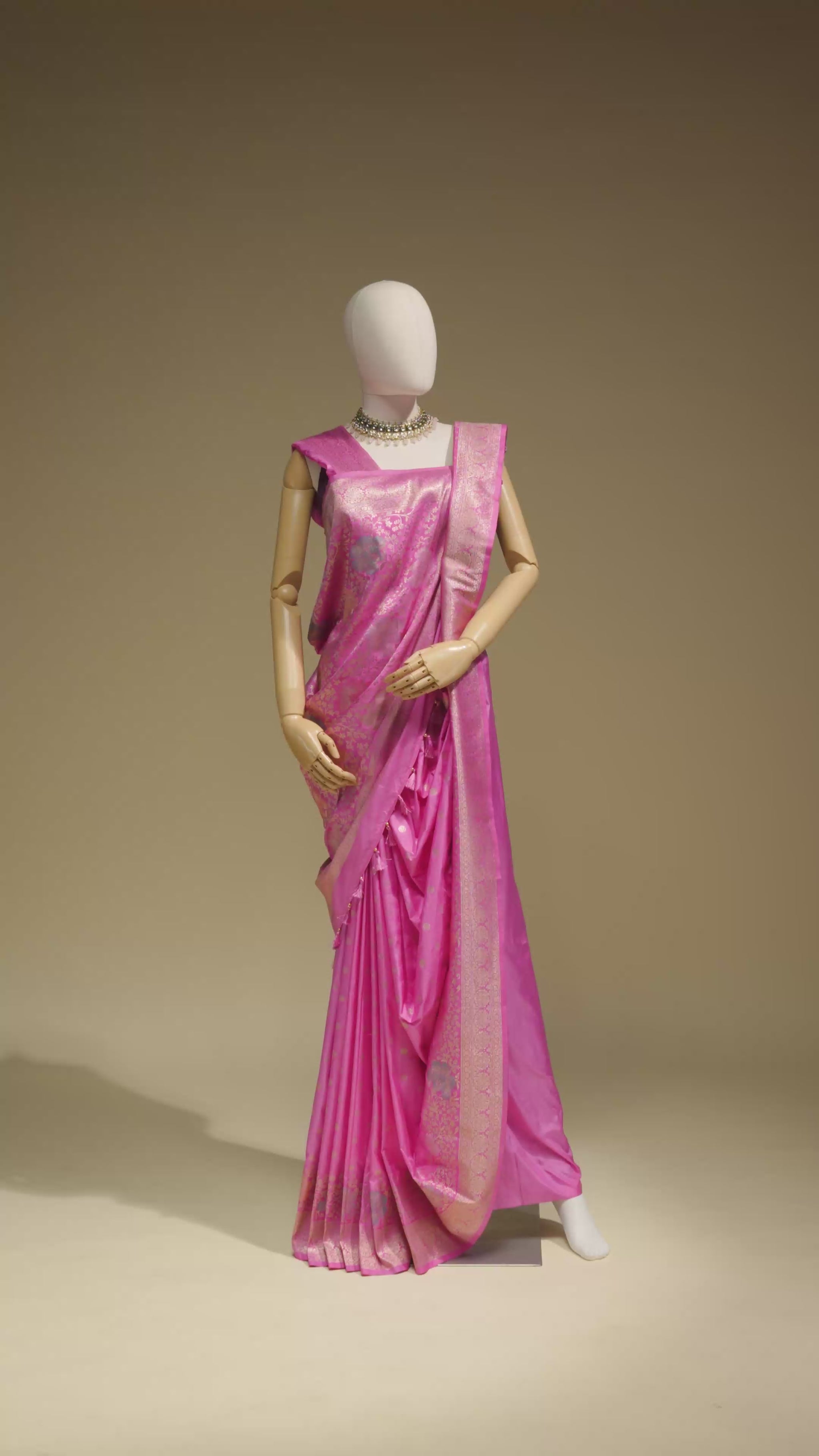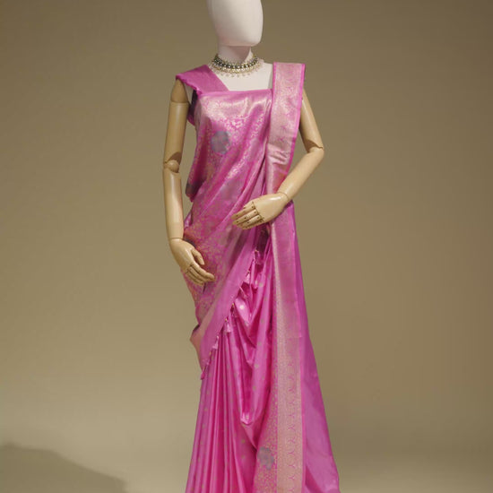 Step into unparalleled elegance with the Katan Silk Saree In Magenta Pink With Traditional Weave. Order now and embrace your resplendent style.