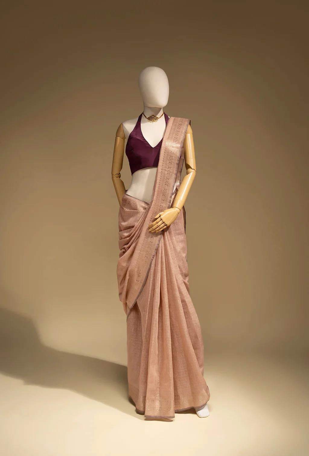 Khadi Organza Saree In Dusty Pink For A Soft And Elegant Look