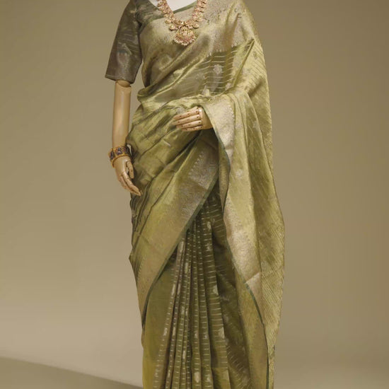Khadi Tissue Saree In Olive Green With Earthy Appeal