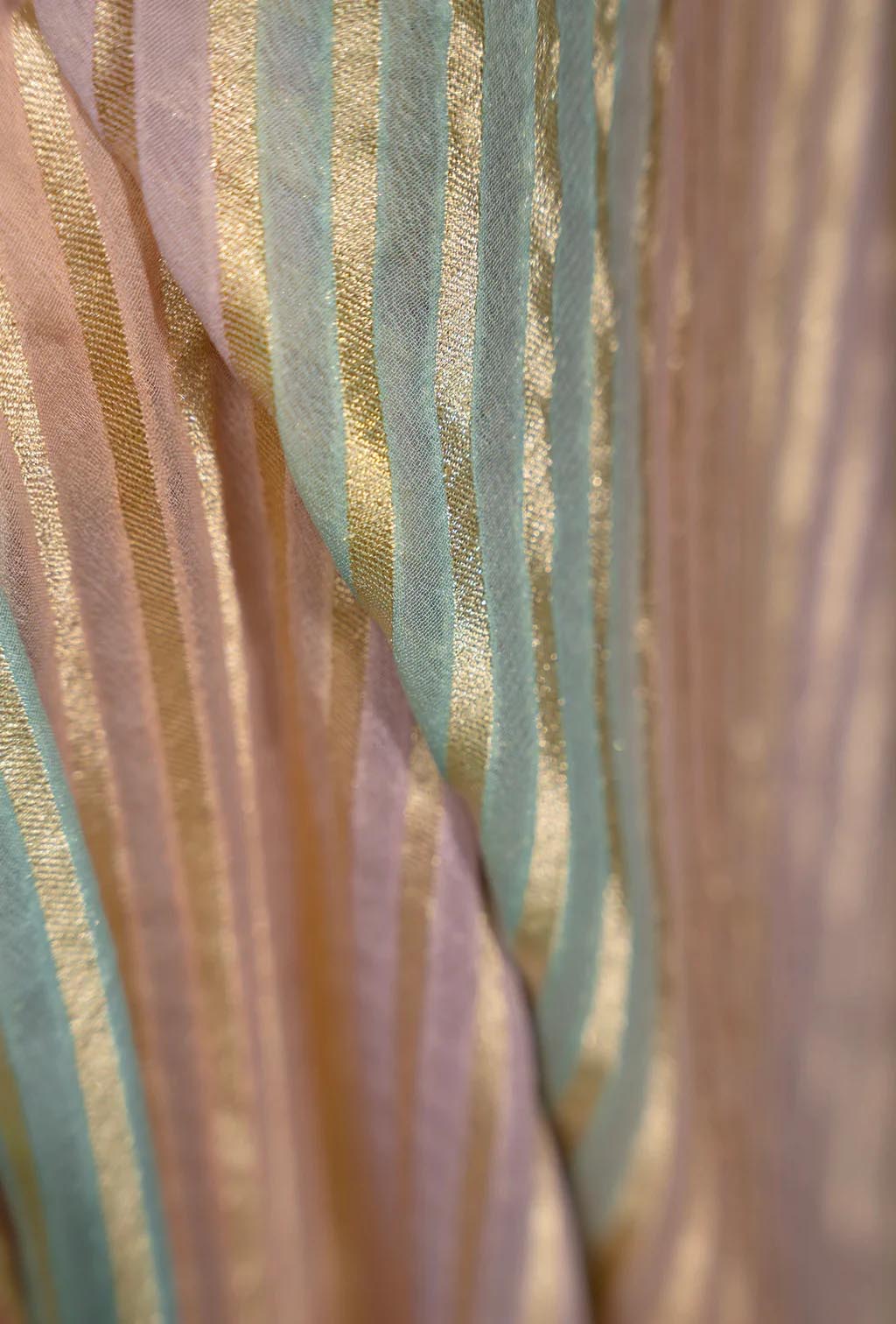 The Lehriya Saree In Khadi Chiffon In Light Pink With Pastel Stripes, a graceful and refreshing creation that redefines contemporary summer style. This exquisite saree, in a soft and charming light pink, features the captivating Lehriya wave pattern, artfully rendered in subtle pastel stripes. Crafted from airy Khadi Chiffon, it offers a beautifully fluid drape and an exceptionally lightweight feel, perfect for embracing elegance with comfort. The delicate combination of the light pink base and the gentle pastel stripes creates a serene and picturesque aesthetic, ideal for warm-weather occasions.