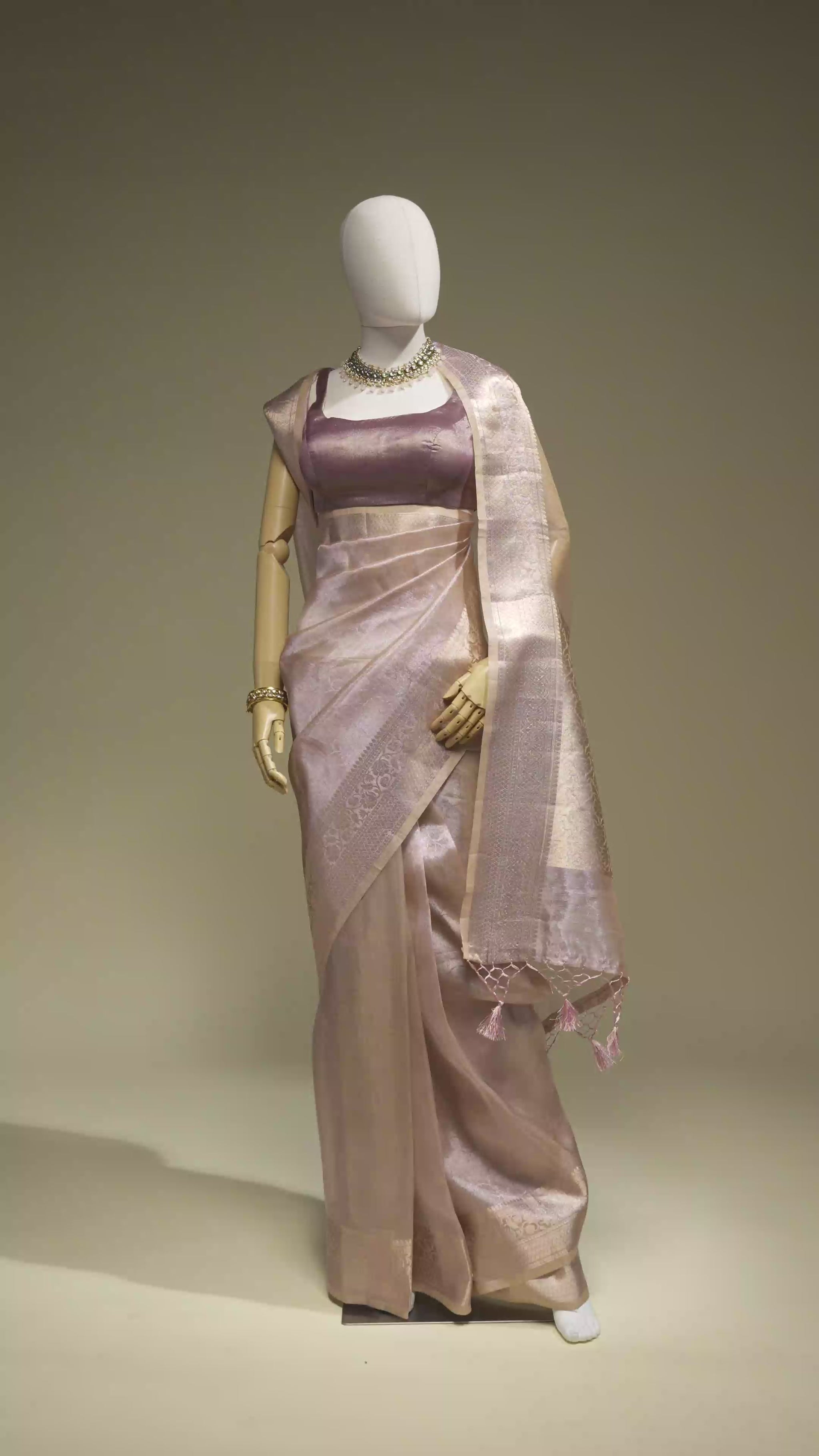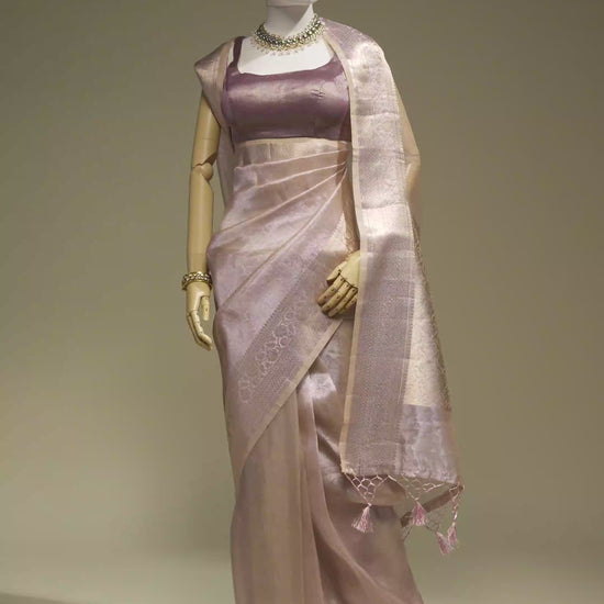 Light Lilac Tissue Silk Saree With Unstitched Blouse
