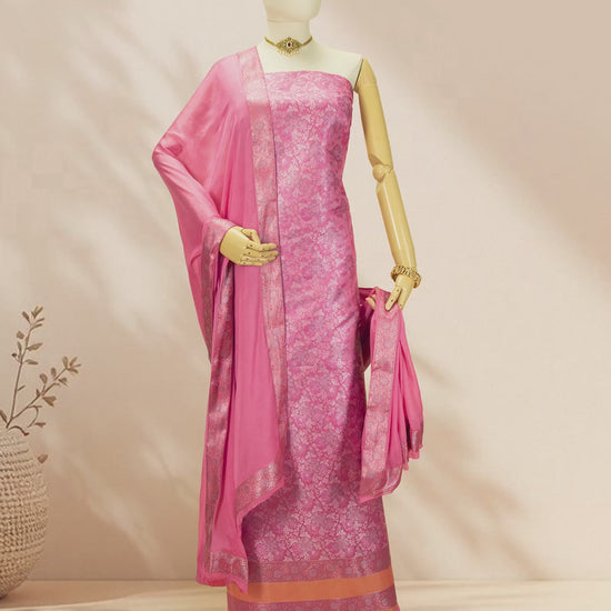 Step in with grace & elegance in this Light Pink Modal Silk Banarasi Suit Piece, featuring a printed kurta, comfortable crepe pant, and graceful Chinon dupatta. Perfect for weddings, festivals, or traditional occasions.