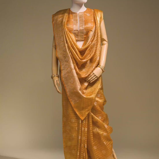 Marigold Yellow Crushed Tissue Silk Saree With Unstitched Blouse