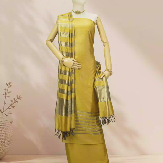 Mustard Yellow & Antique Gold Silk Kurta Set With Dupatta & Pants