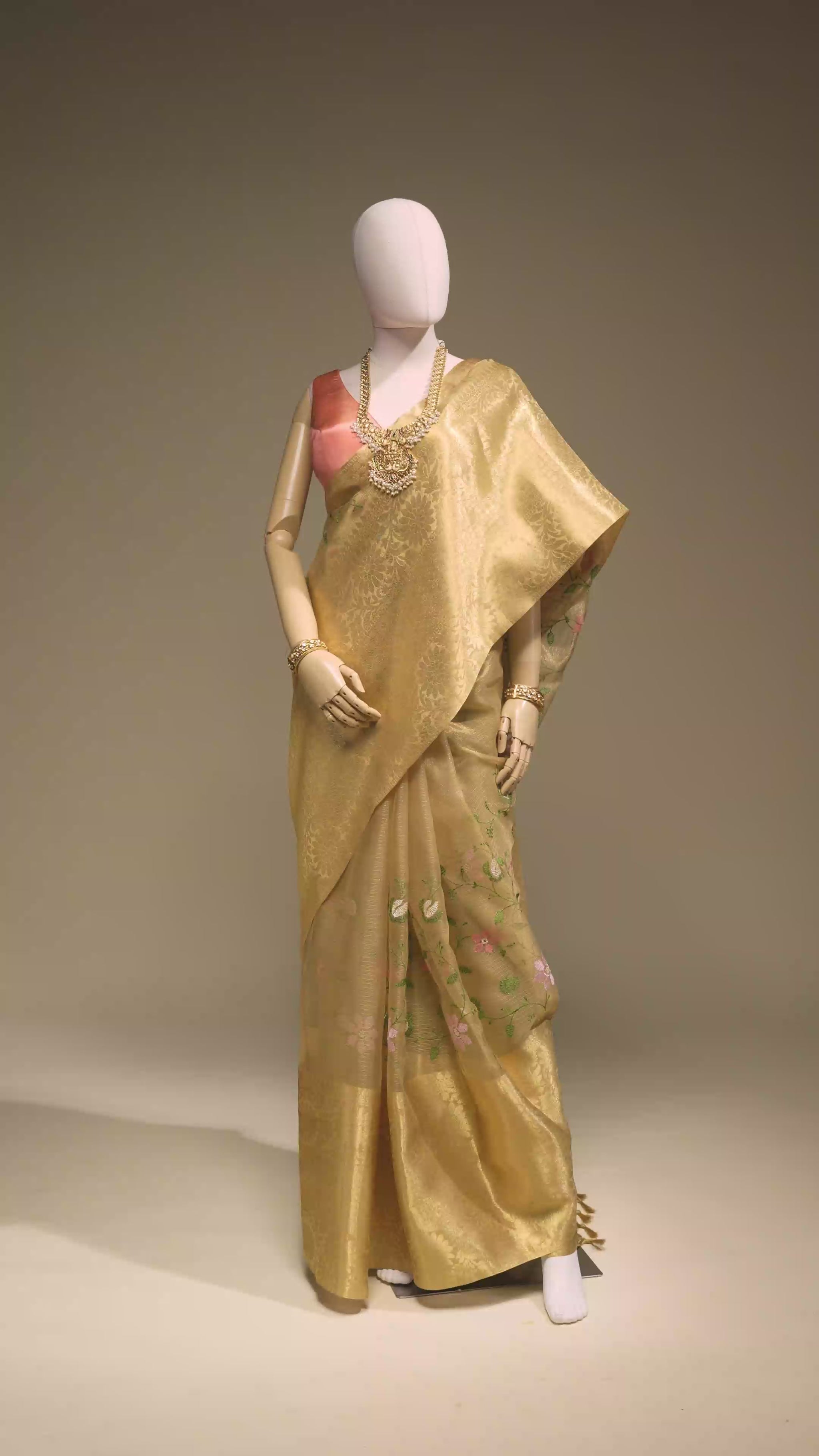 Dry Clean Only to preserve the delicate Khadi Organza fabric and the beautiful ochre yellow color of the saree. Handle with care due to its sheer and delicate nature.