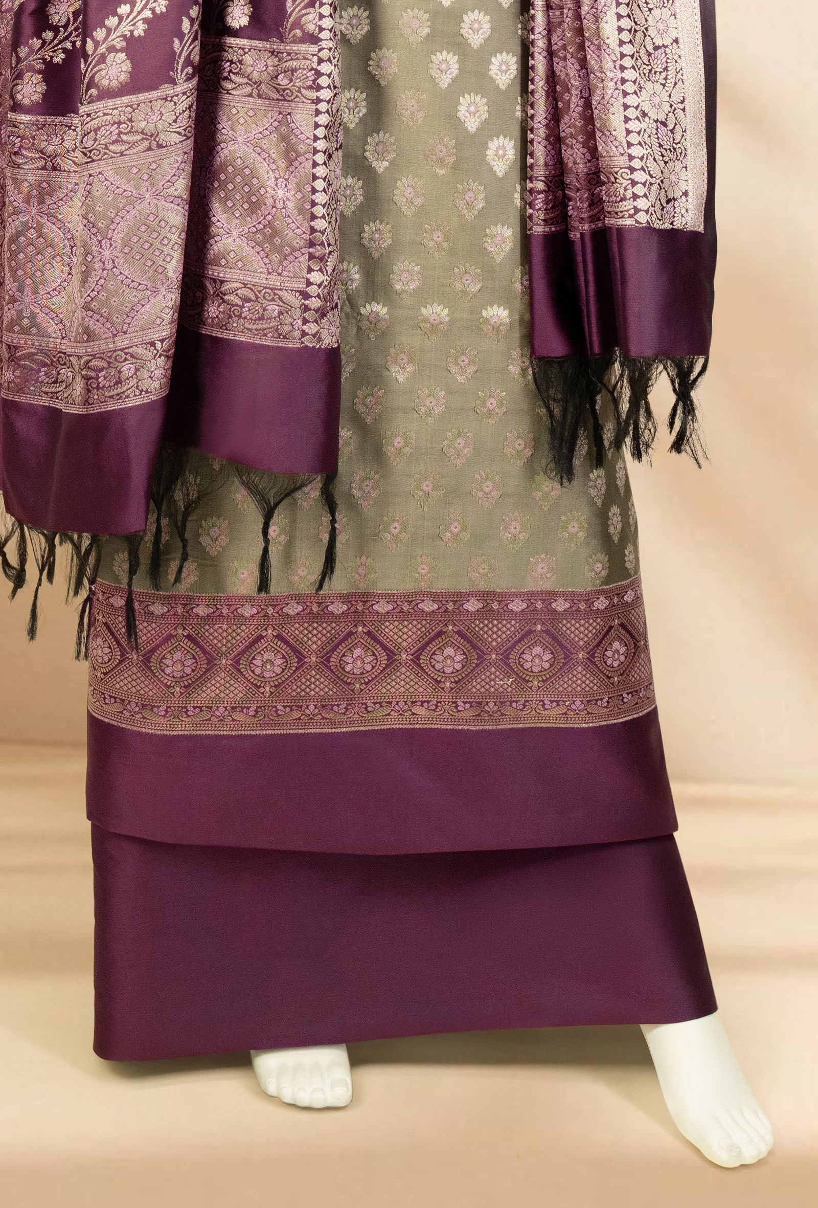 Olive Green Pure Banarasi Silk 3-Piece Designer Suit for Women