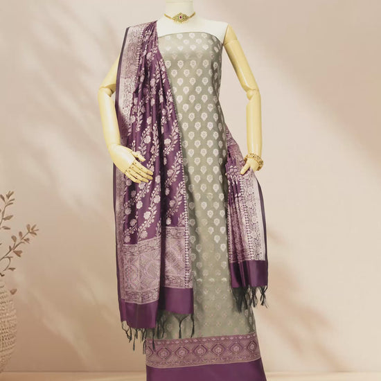 Its time to elevate your ethnic wardrobe with this stunning Olive Green Pure Banarasi Silk Suit Piece, it has a beautifully woven kurta, pant, and dupatta. Crafted from luxurious Banarasi silk, this designer suit for women is perfect for weddings, festive occasions, and traditional gatherings.