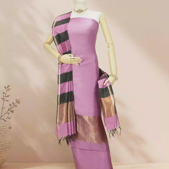 Onion Pink Silk Kurta Set With Dupatta & Pants