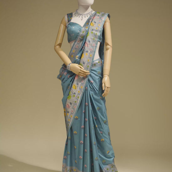 Paithani Dola Silk Saree With Dusty Blue Tones