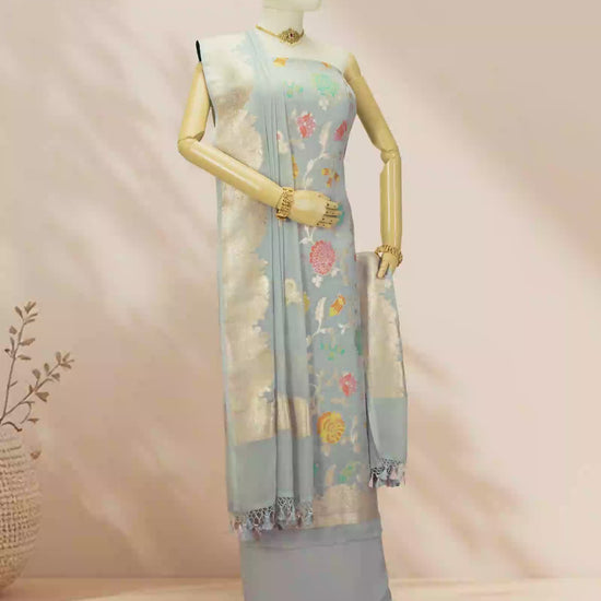 Add refreshing elegance to your wardrobe with this pale green suit set. The flowing georgette kurta and dupatta combine effortlessly with soft crape pants for a refined silhouette. Perfect for daytime celebrations or festive gatherings, this ensemble offers a graceful drape and modern comfort.