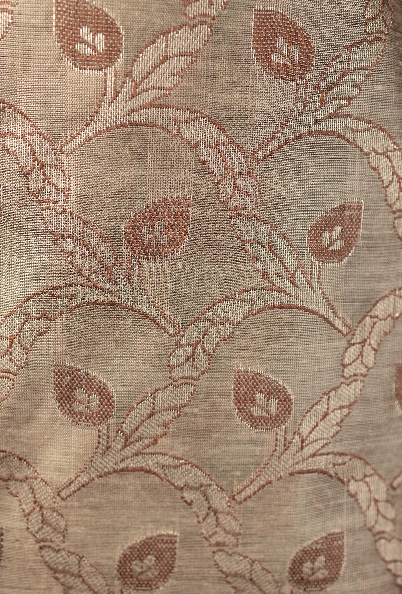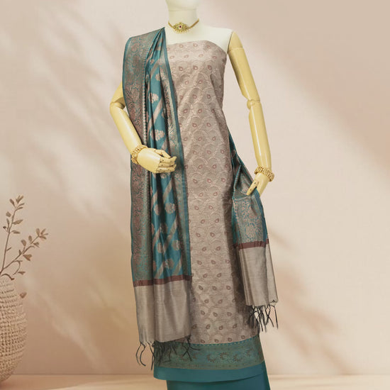 The Peacock Green & Khaki Banarasi Silk Suit Piece, paired with a smooth Pure Silk Pant is an sight to behold. The contrasting hues and fine Banarasi weave bring together craftsmanship and elegance. Perfect for festive occasions, weddings, and evening celebrations.