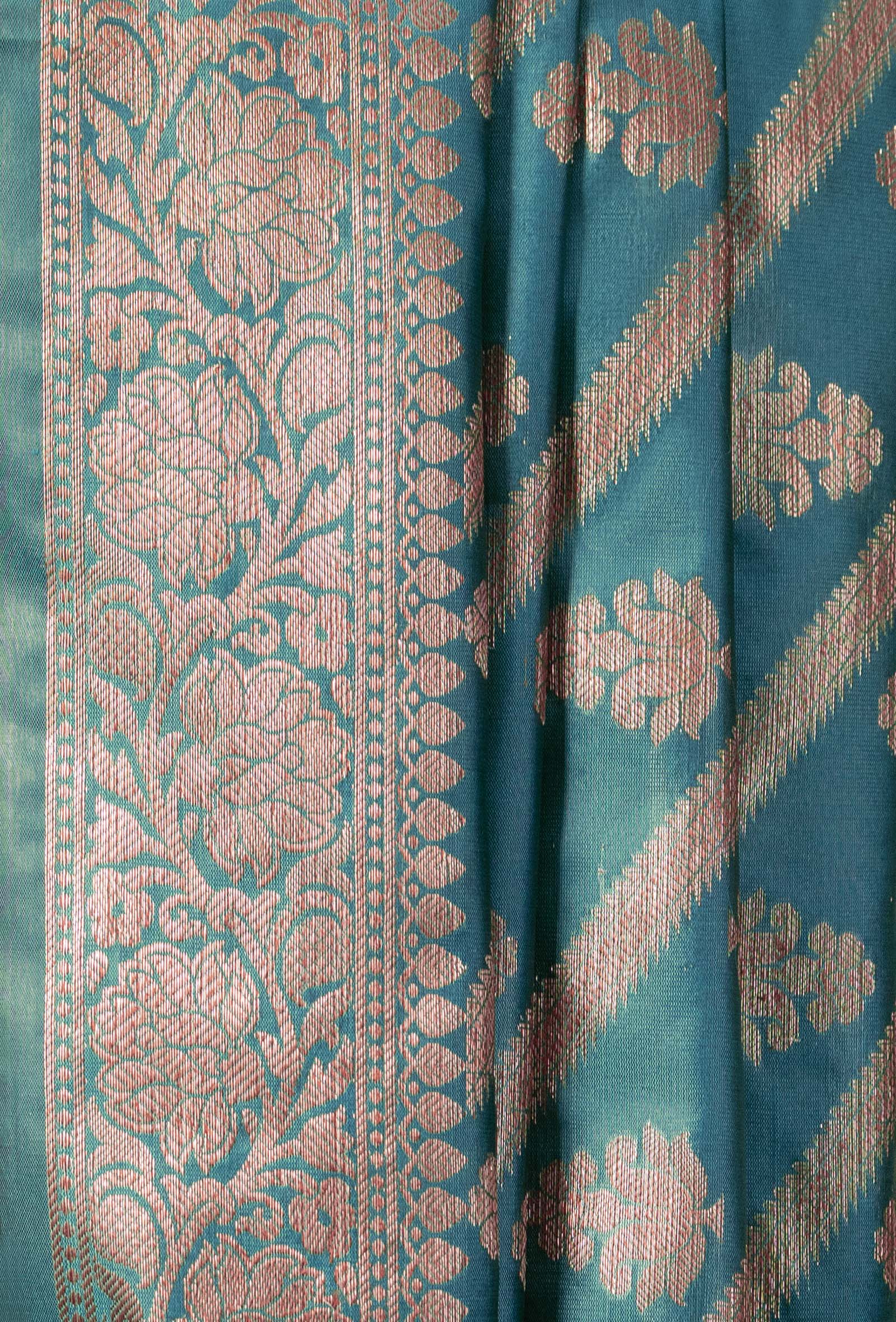 Peacock Green & Khaki Banarasi Silk 3-Piece Suit – Kurta, Pure Silk Pant & Dupatta