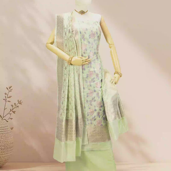 Pista Green Grace Chanderi Silk Kurta Set With Dupatta And Pants
