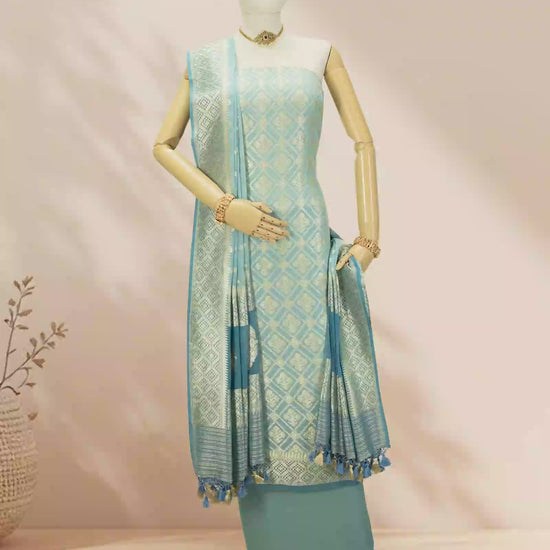 Radiate class in our powder blue georgette suit set, designed with a modern touch of luxury. The airy georgette kurta and dupatta drape beautifully, while soft crape pants add comfort and elegance. This outfit embodies calm confidence and timeless charm for all your royal celebrations.