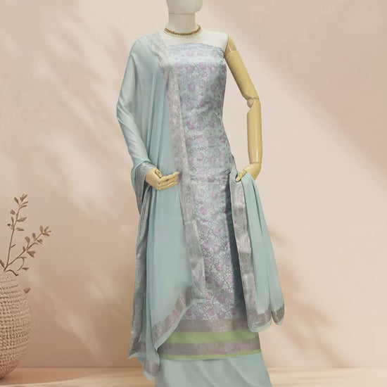 The soft sheen and breezy texture of Powder Blue Modal Silk 3-Piece Suit Set makes it perfect for festive gatherings, casual celebrations, or special occasions. This ensemble captures sophistication with a serene and timeless appeal making you the highlight of every party.