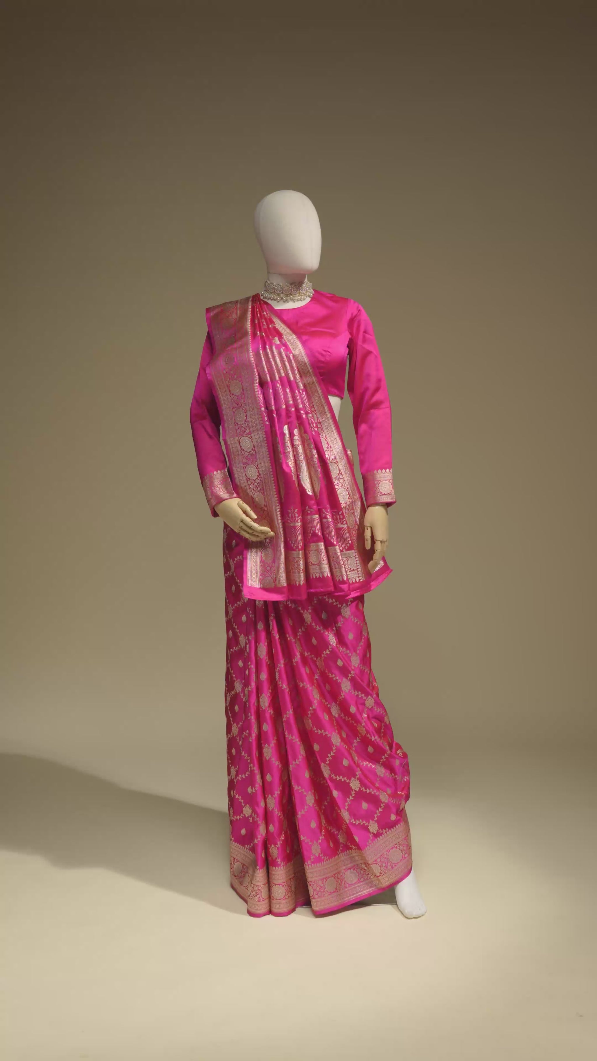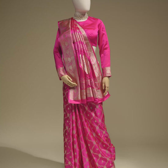 Pure Mashru Silk Saree In Hot Pink With Beautiful Jaal Work