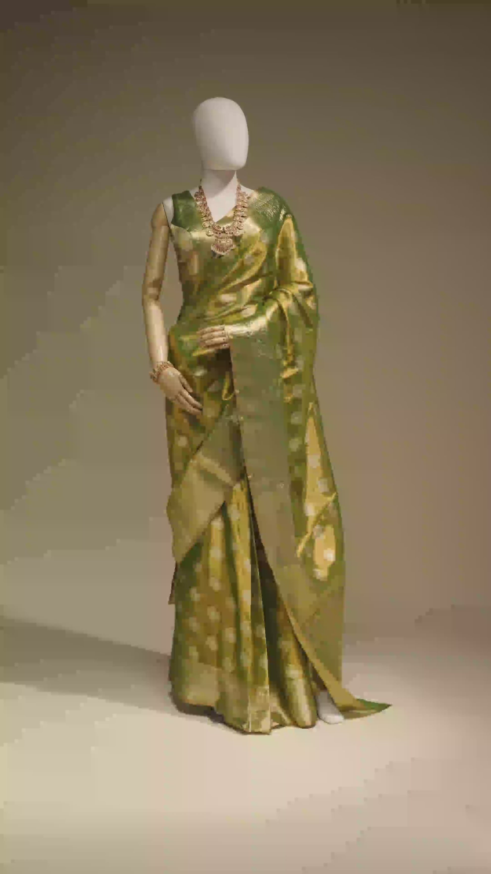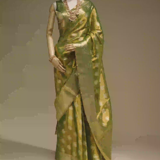 Step into unparalleled brilliance with the Pure Shimmer Organza Saree In Golden Green. Order now and embrace your radiant style.