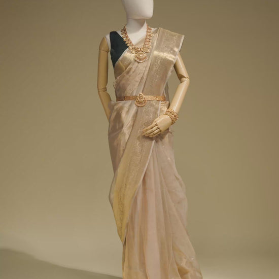 Step into unparalleled brilliance with the Pure Shimmer Tissue Saree In Golden For Luxe Occasions. Order now and embrace your most radiant and opulent style.
