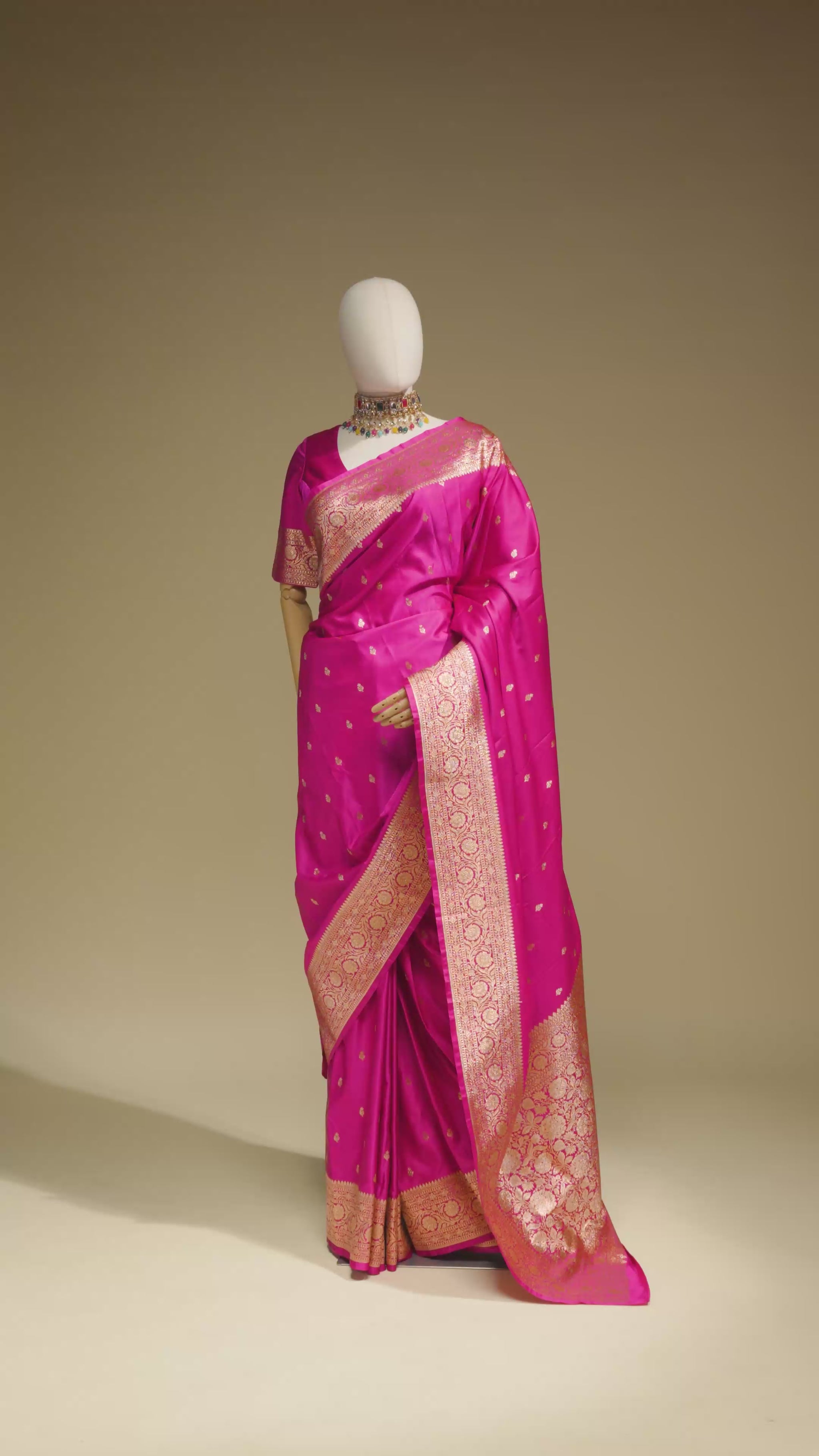 Dry Clean Only to preserve the delicate zari buttiwork, the luxurious pure silk fabric, and the beautiful color of the saree.
