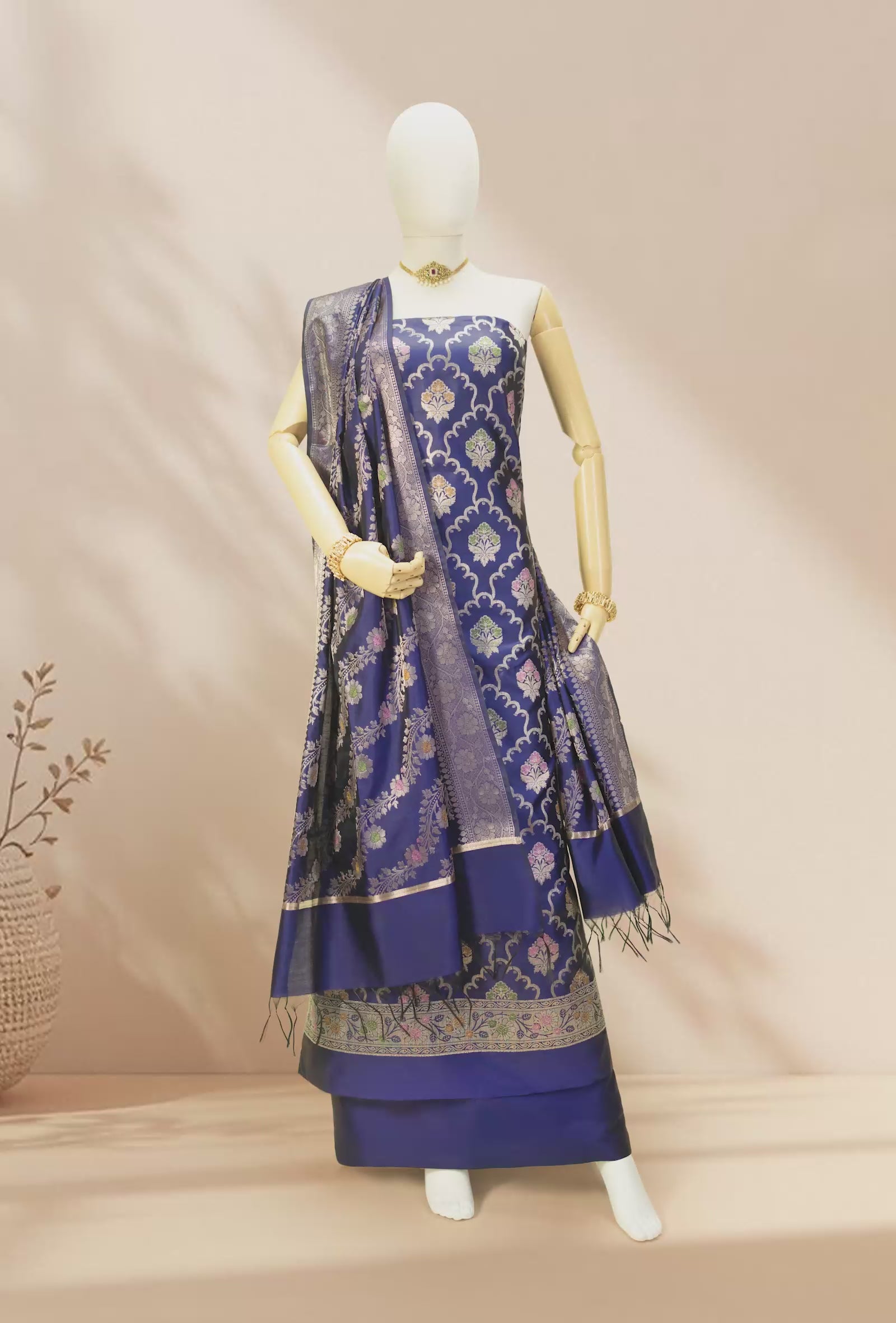 Add a royal touch to your wardrobe with this Purple Banarasi Silk Suit Piece, featuring a beautifully crafted kurta, matching pant, and rich Banarasi dupatta. Perfect for weddings, festivals, and special occasions.