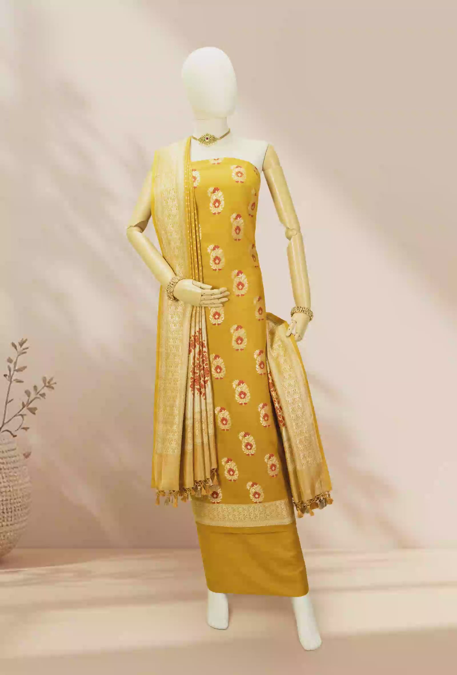 Bright, elegant, and full of warmth, this mustard yellow raw silk kurta set is made to make you shine. The raw silk kurta has a rich texture and gentle sheen that feels luxurious yet comfortable. It’s paired with soft crape pants and a light dupatta that flows beautifully, completing a look that’s perfect for festive gatherings, weddings, or family celebrations.