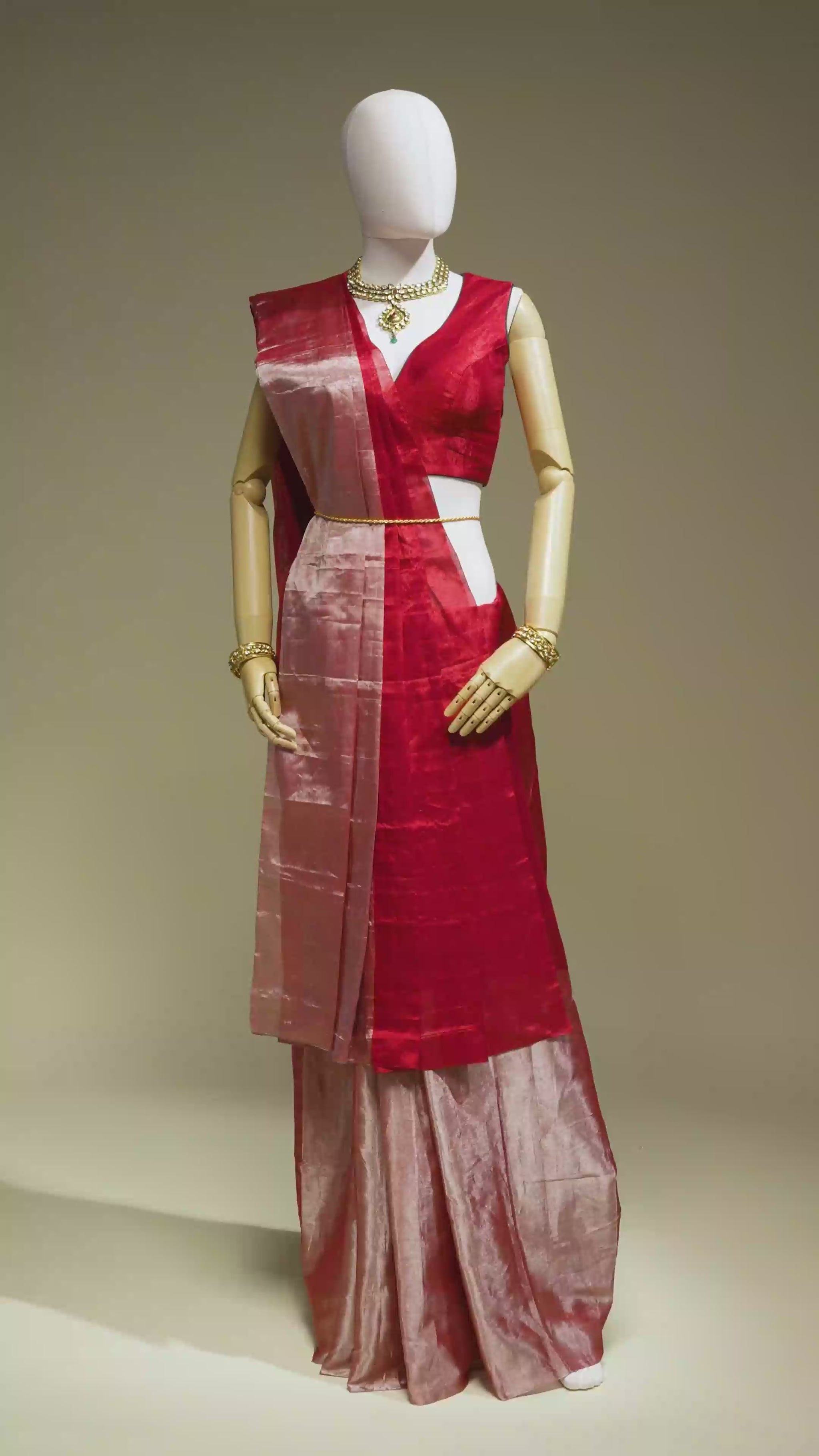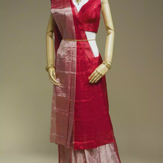 Red Chanderi Saree with Silver Zari Border & Unstitched Blouse