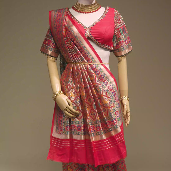 Red Patola Katan Silk Saree With Unstitched Blouse