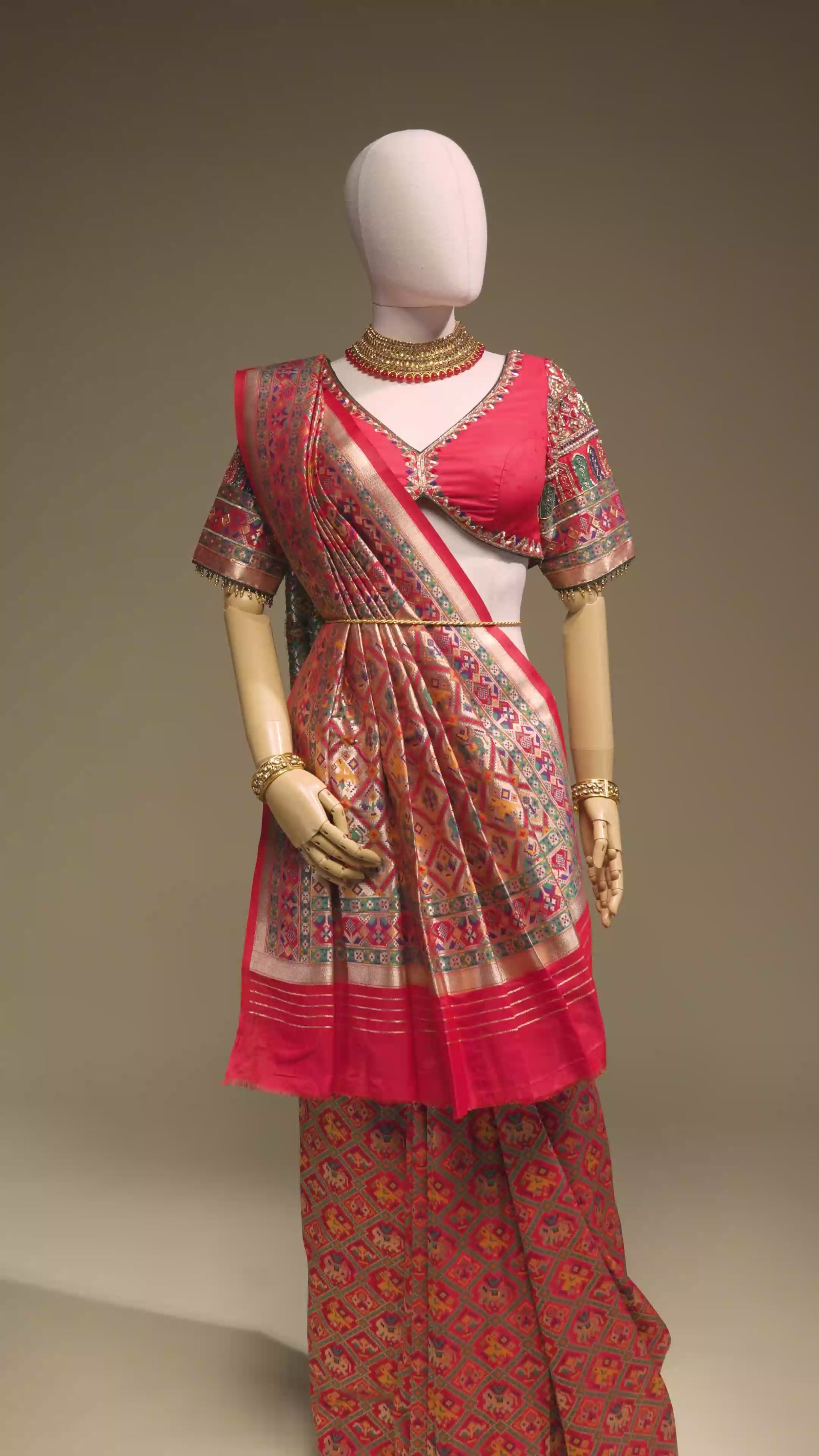 Dry Clean Only to preserve the delicate Patola weave, the luxurious Katan silk fabric, and the vibrant red color of the saree.