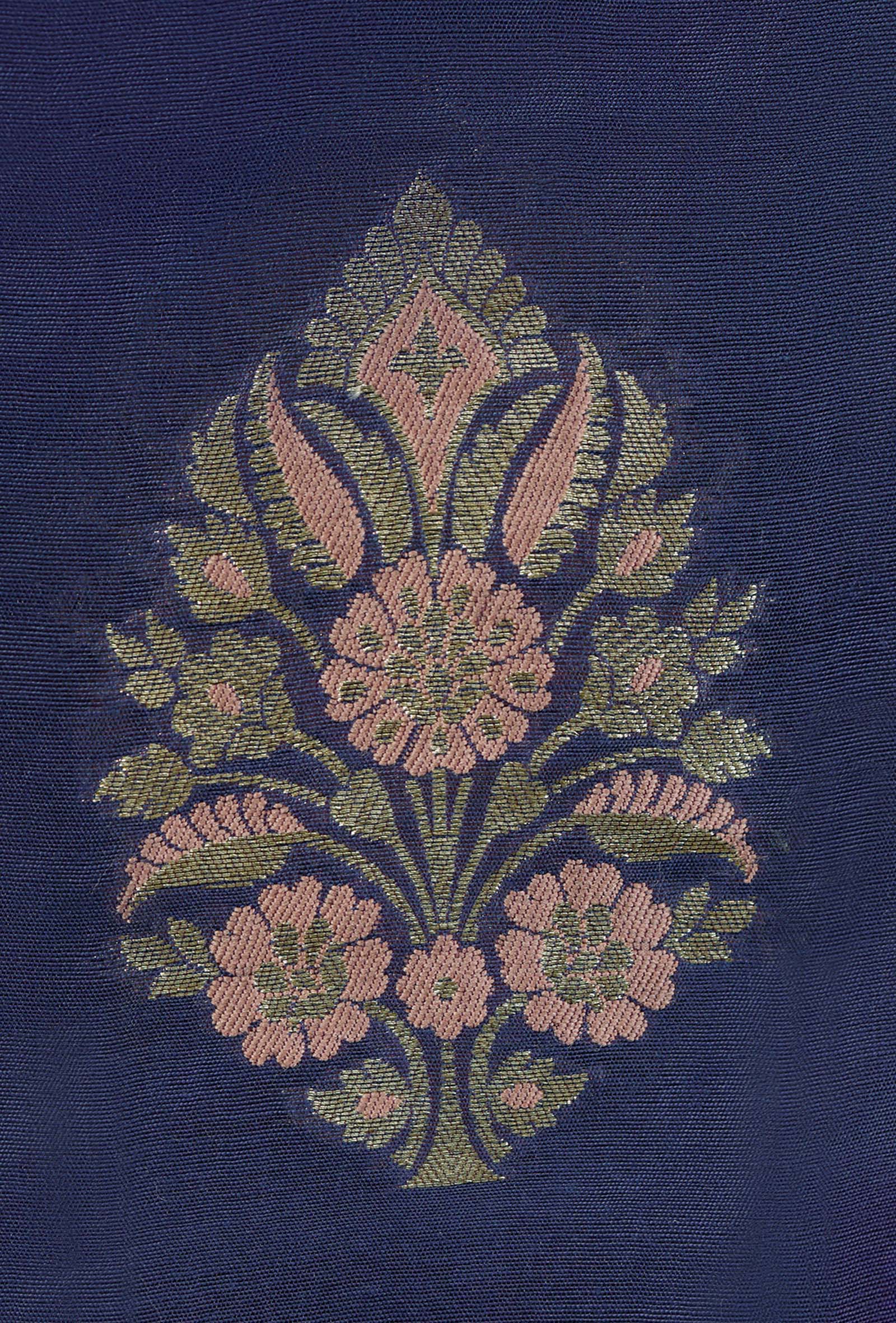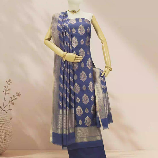 Royal Blue Chanderi Kurta Set With Cotton Silk Pants & Dupatta