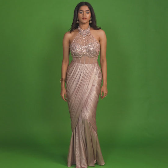 Command attention with the Sabrina Pale Mauve Corset Style Fishtail Gown, a masterpiece of contemporary allure and structured elegance, perfect for Mumbai's most exclusive soirees in 2025. This captivating gown, in a delicate yet sophisticated pale mauve hue, offers a subtle blush that radiates refined charm. It features a meticulously designed corset-style bodice that beautifully sculpts and accentuates the waist, flowing gracefully into a dramatic fishtail silhouette that ensures a show-stopping entrance. This gown is an ode to modern femininity with a touch of timeless glamor.