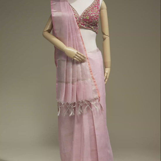 Soft Pink Khadi Tissue Saree With Unstitched Blouse
